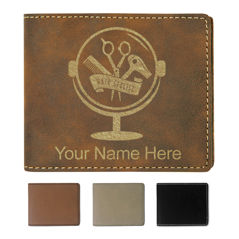 Faux Leather Bi-Fold Wallet, Hair Stylist, Personalized Engraving Included