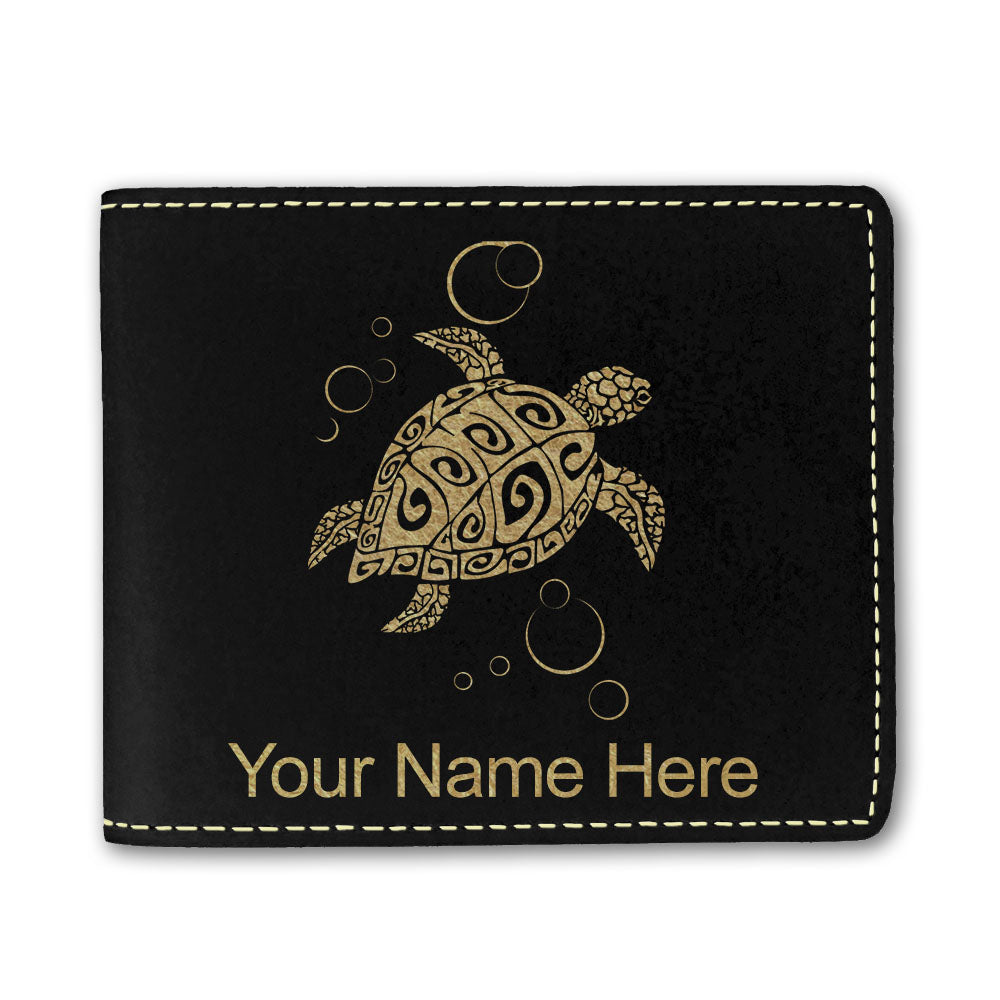 Faux Leather Bi-Fold Wallet, Hawaiian Sea Turtle, Personalized Engraving Included