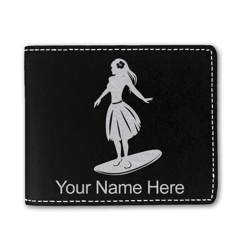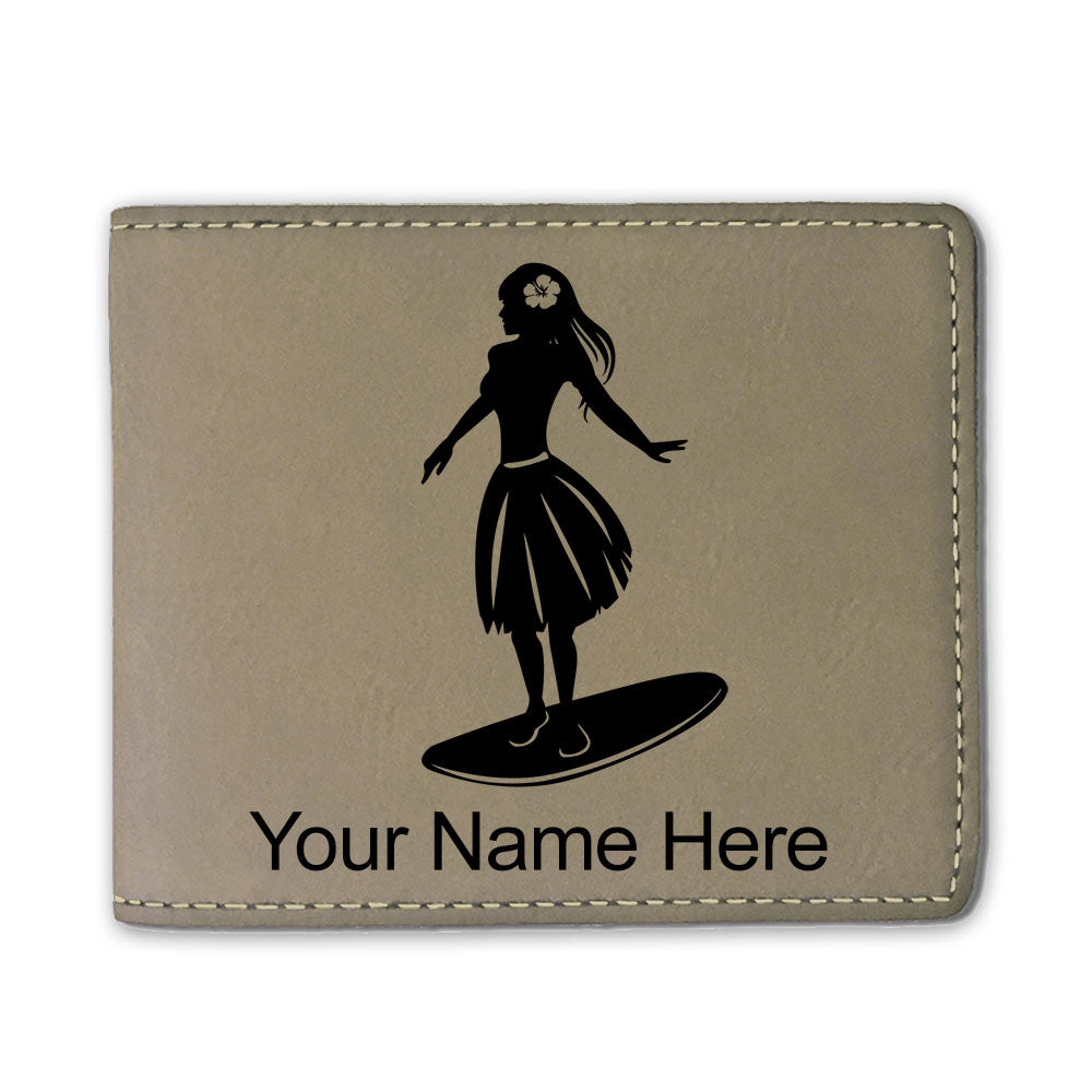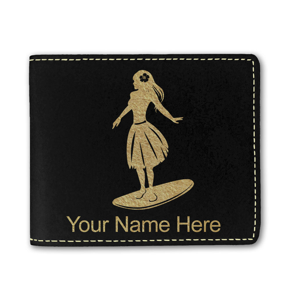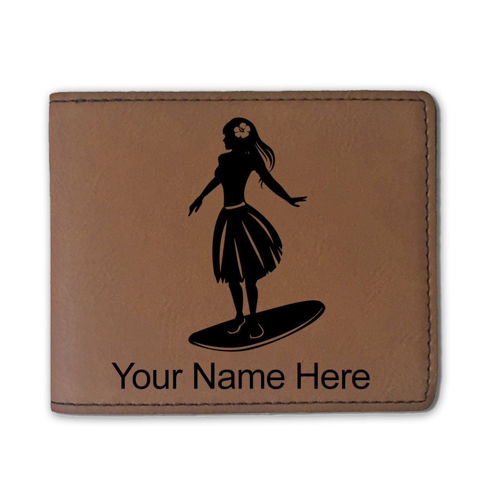 Faux Leather Bi-Fold Wallet, Hawaiian Surfer Girl, Personalized Engraving Included