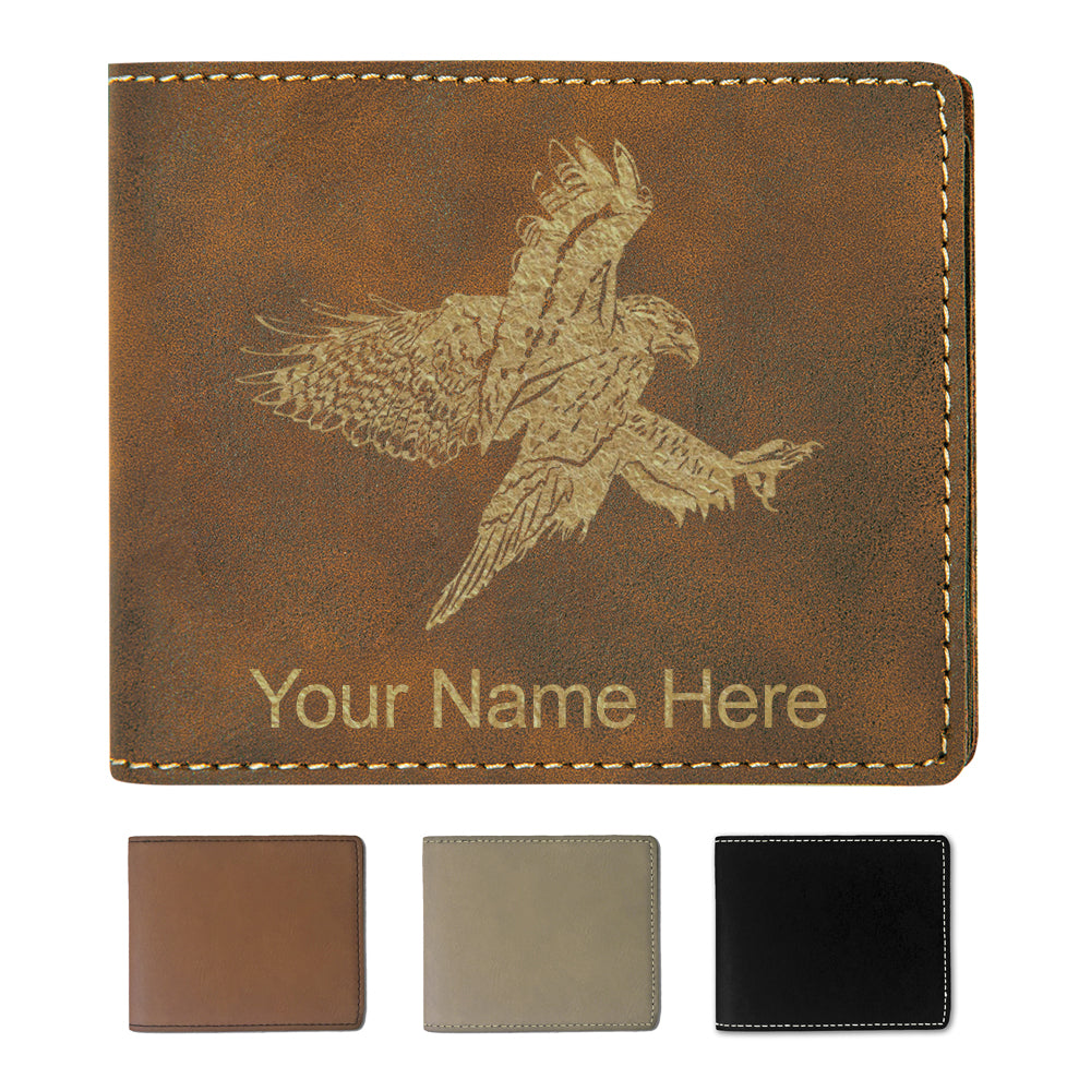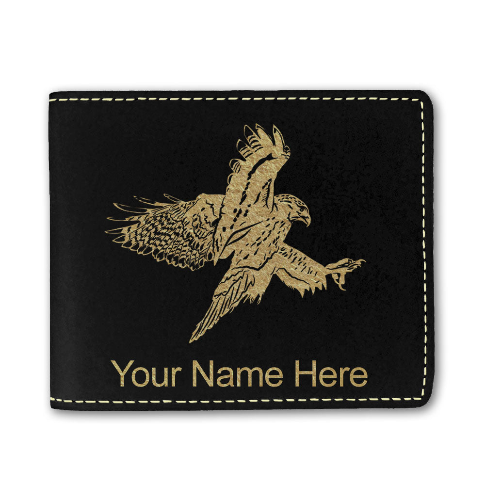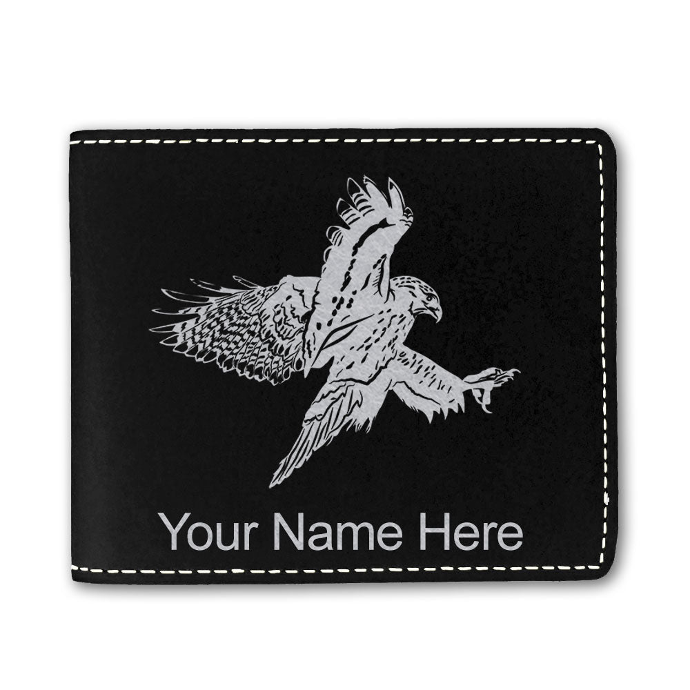 Faux Leather Bi-Fold Wallet, Hawk, Personalized Engraving Included