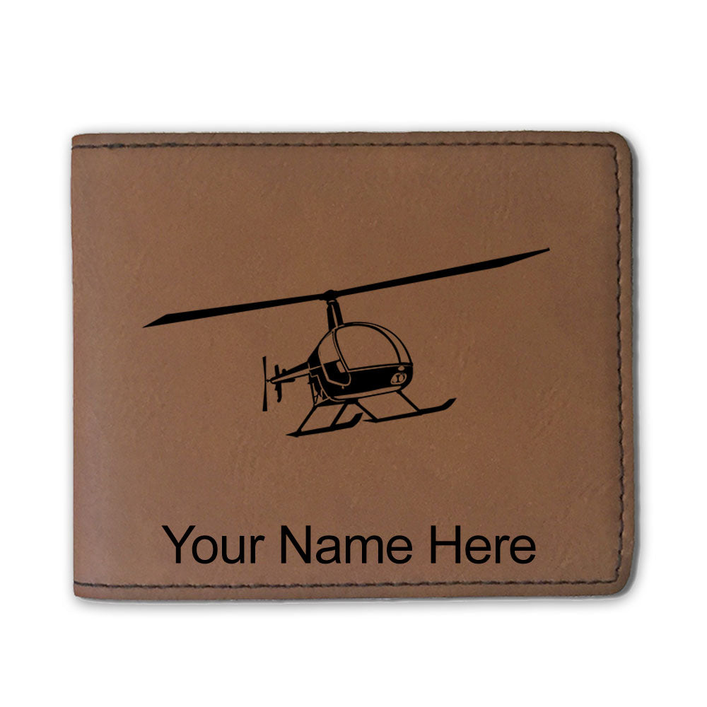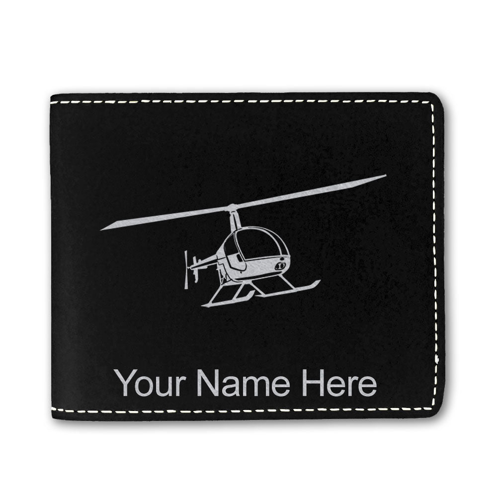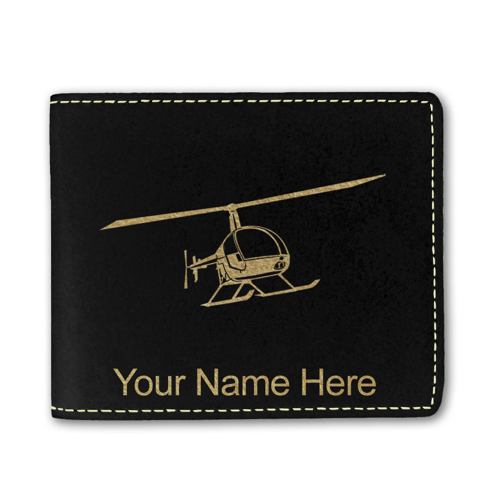 Faux Leather Bi-Fold Wallet, Helicopter 2, Personalized Engraving Included