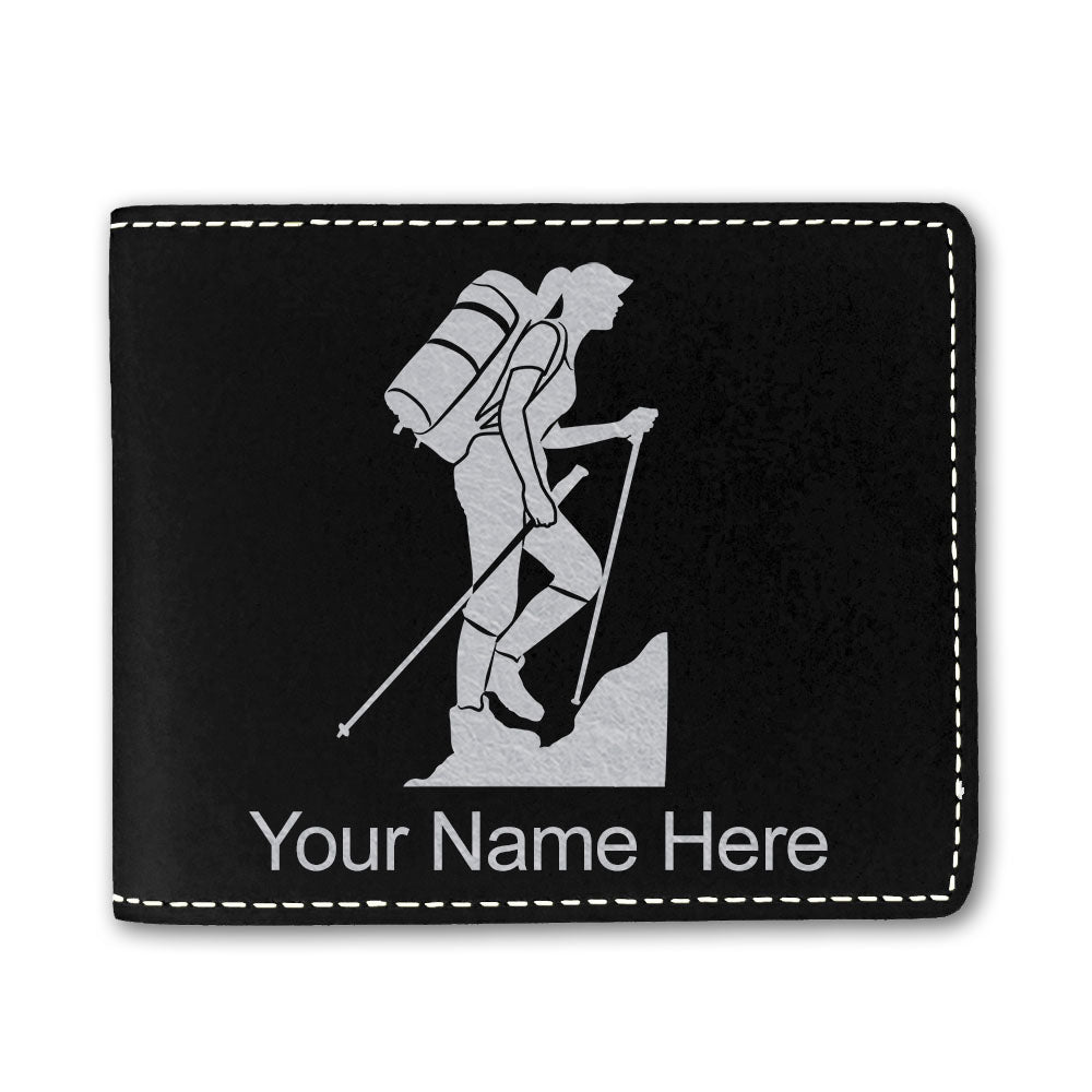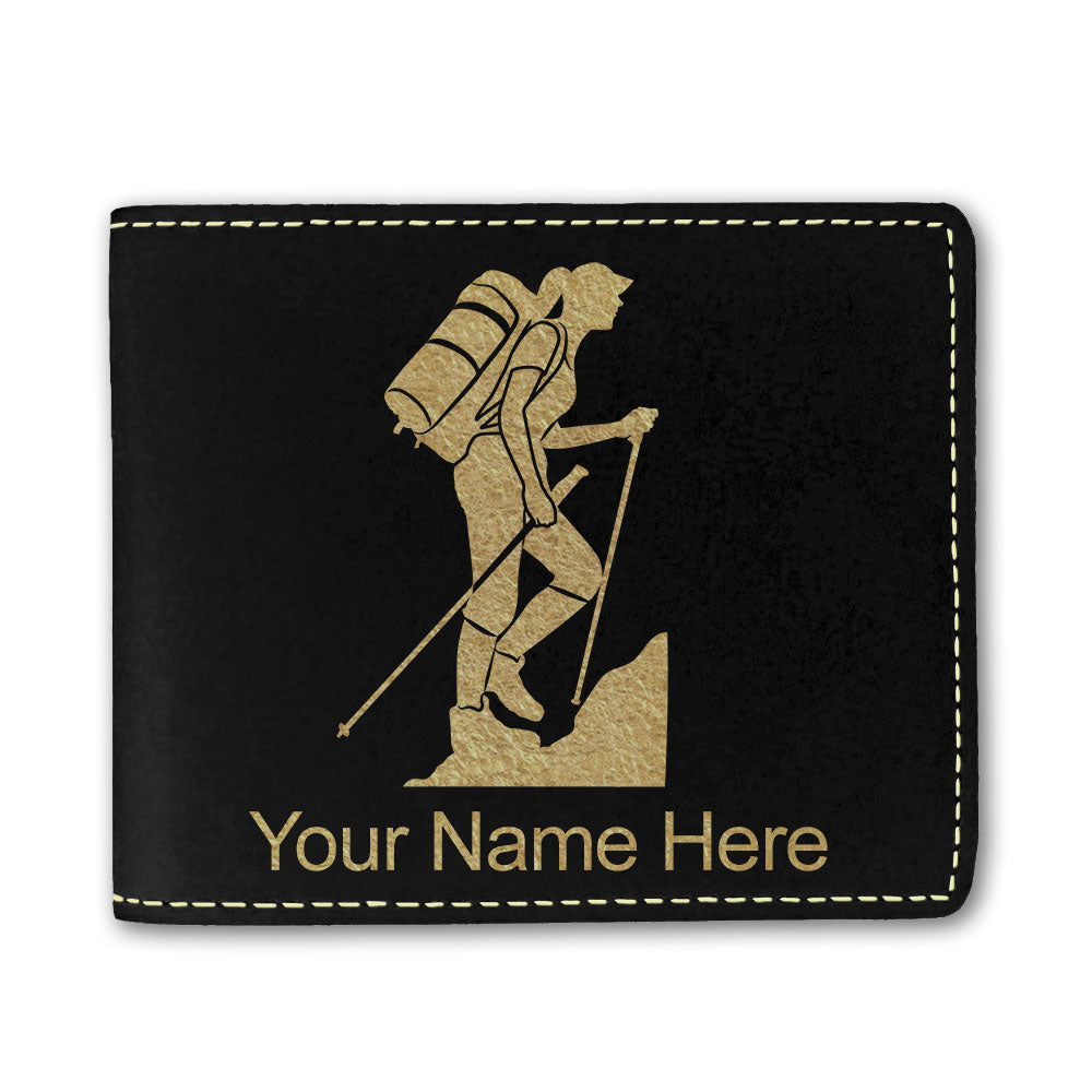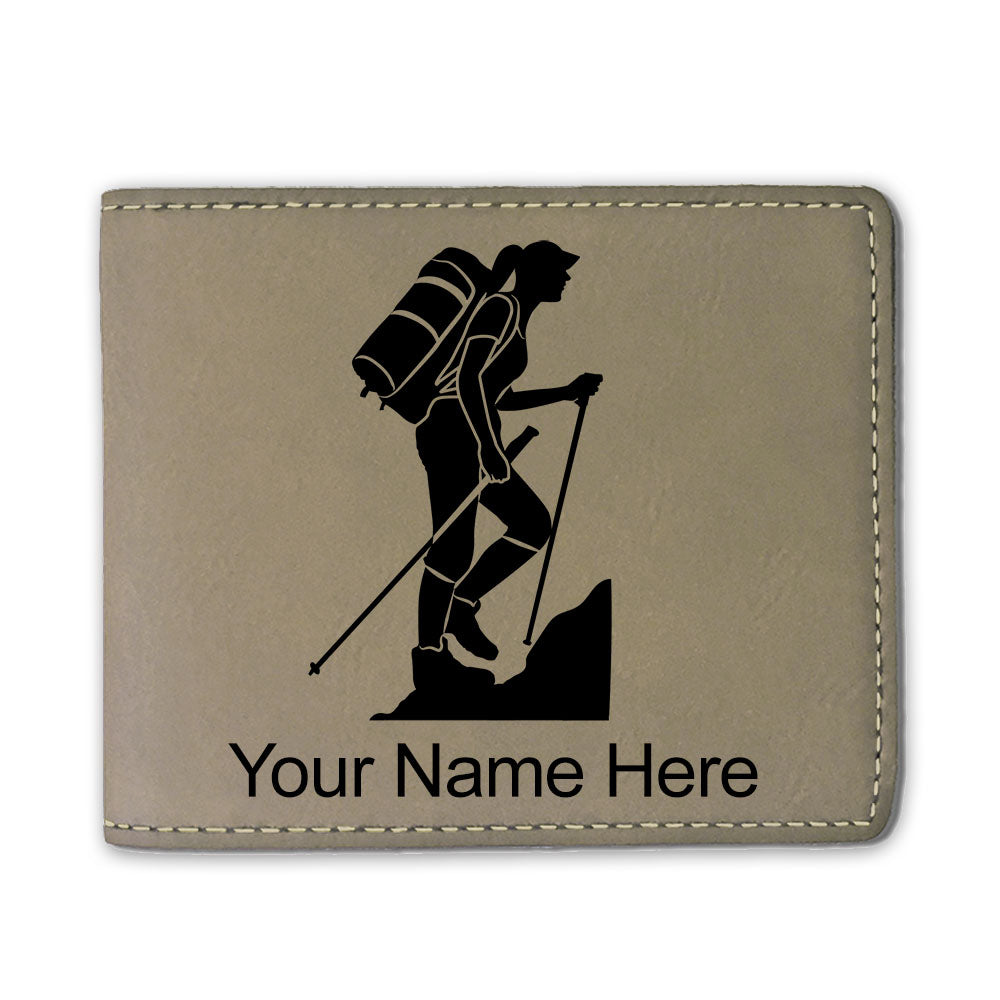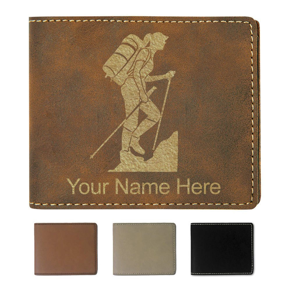 Faux Leather Bi-Fold Wallet, Hiker Woman, Personalized Engraving Included