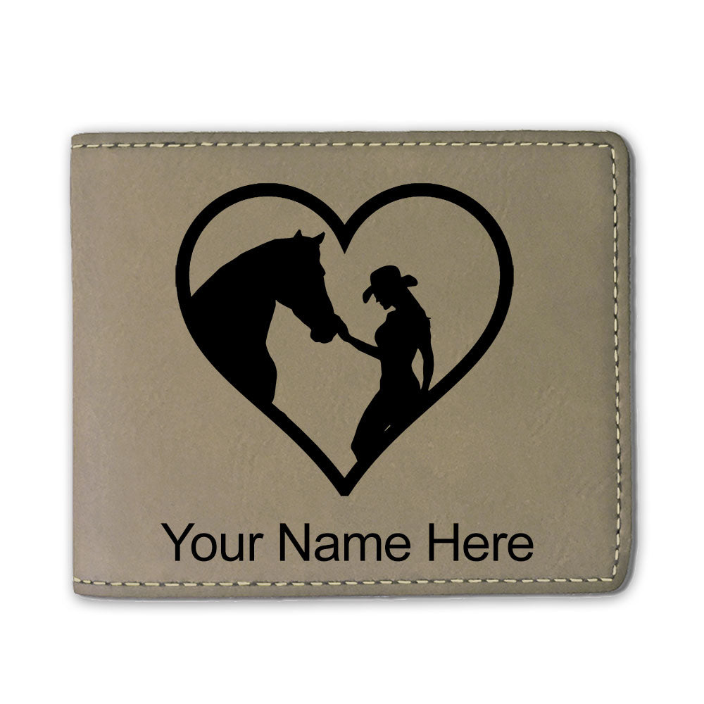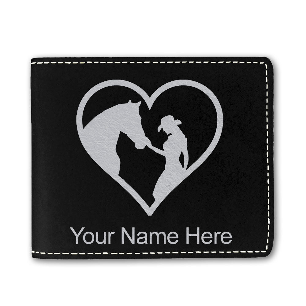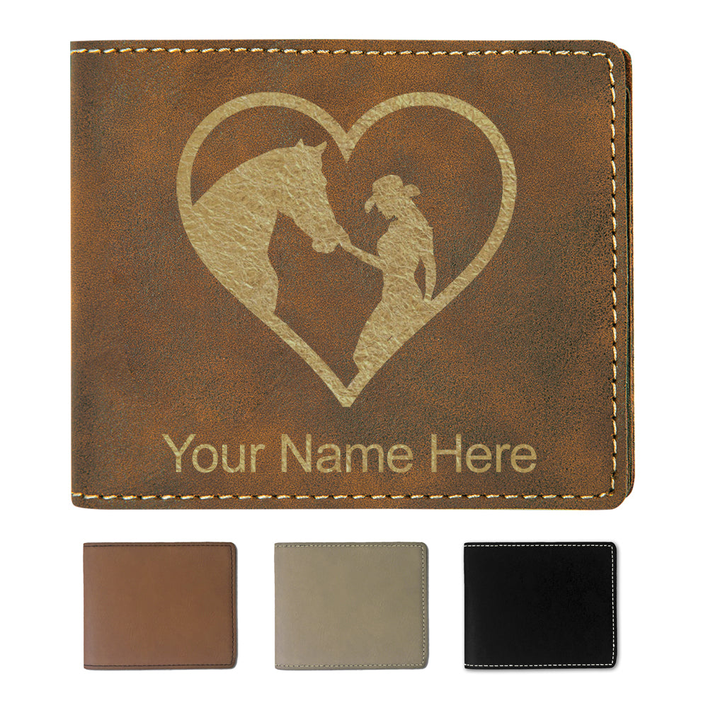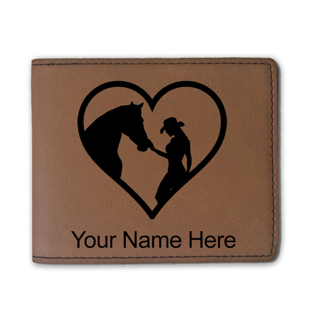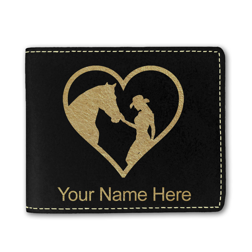 Faux Leather Bi-Fold Wallet, Horse Cowgirl Heart, Personalized Engraving Included