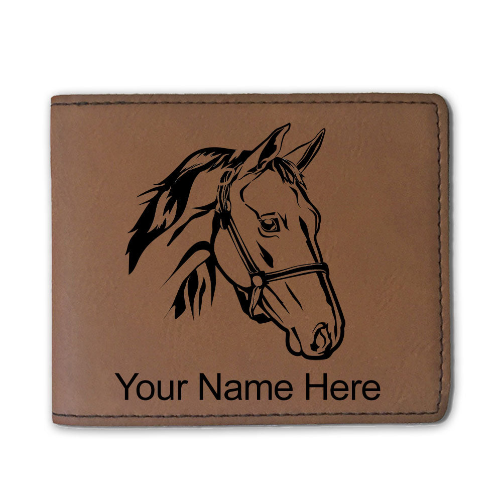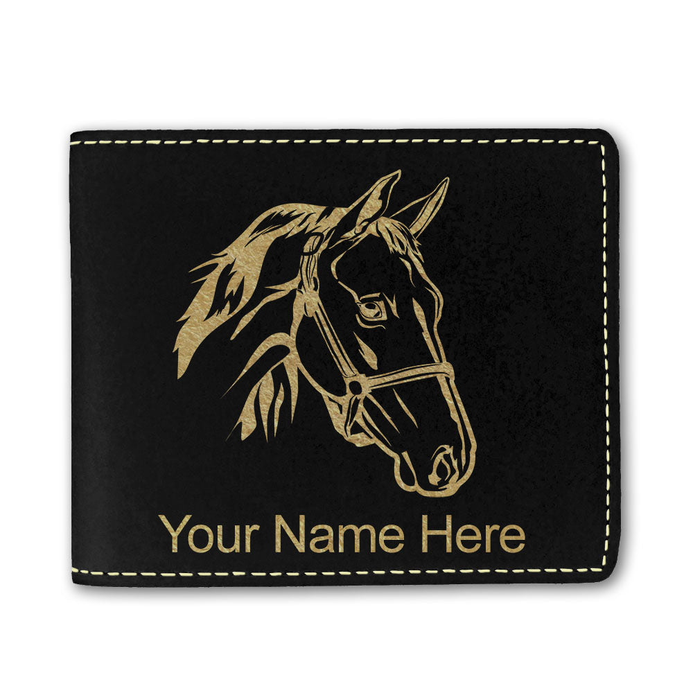 Faux Leather Bi-Fold Wallet, Horse Head 2, Personalized Engraving Included