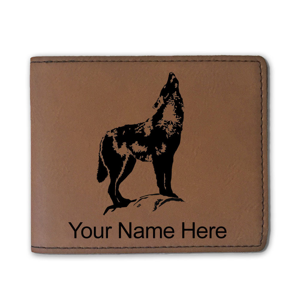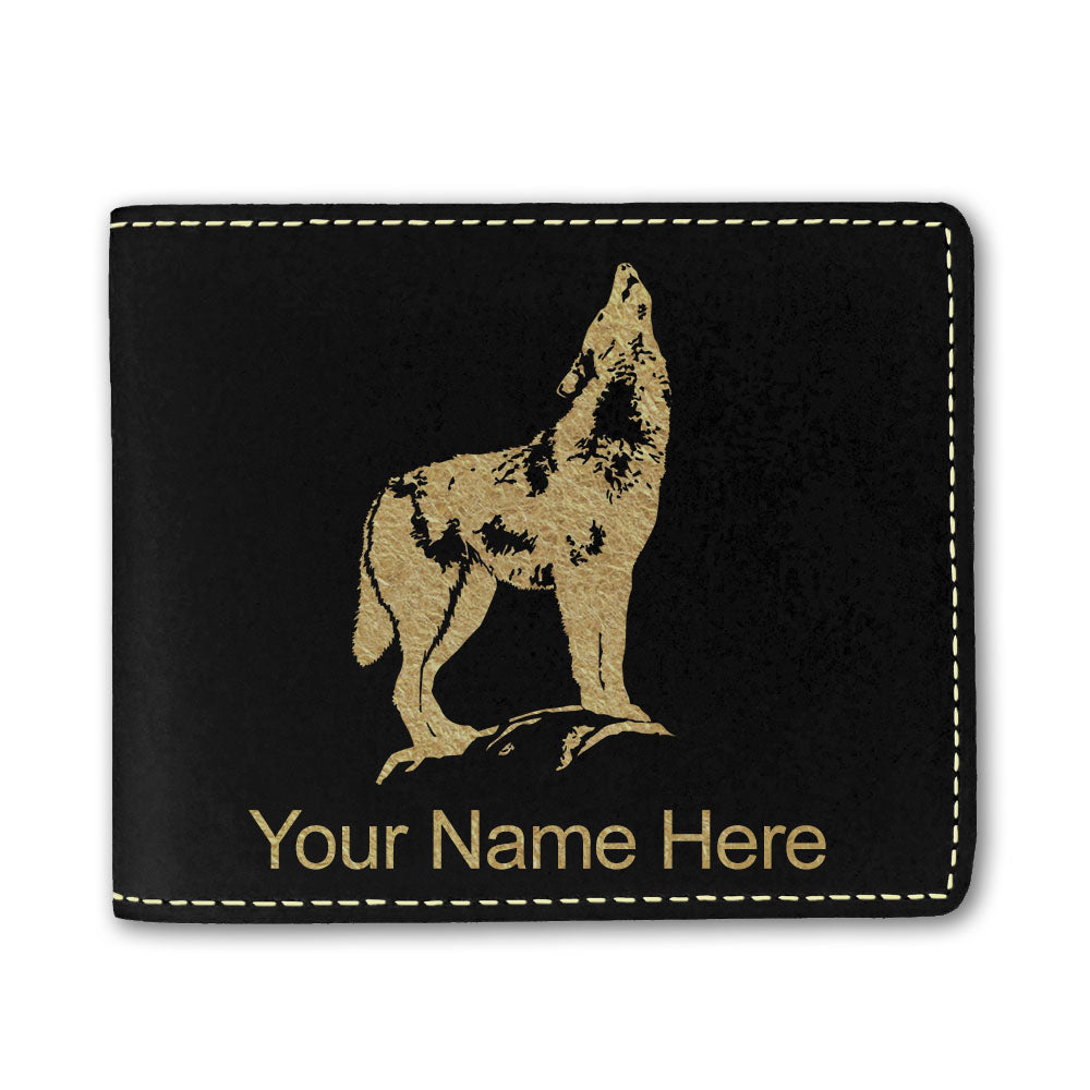 Faux Leather Bi-Fold Wallet, Howling Wolf, Personalized Engraving Included