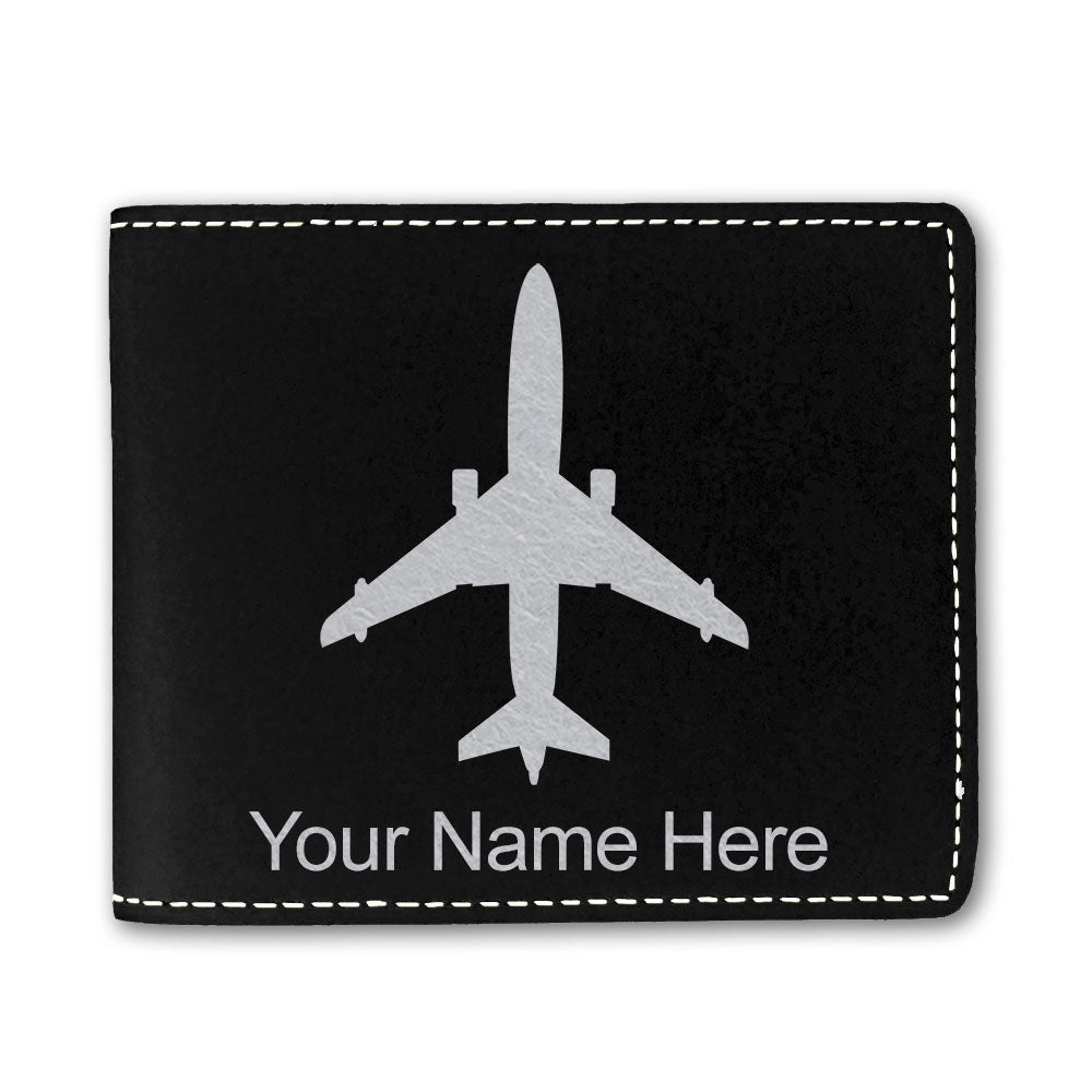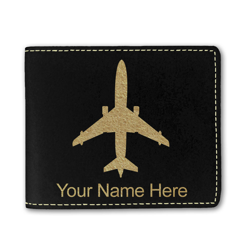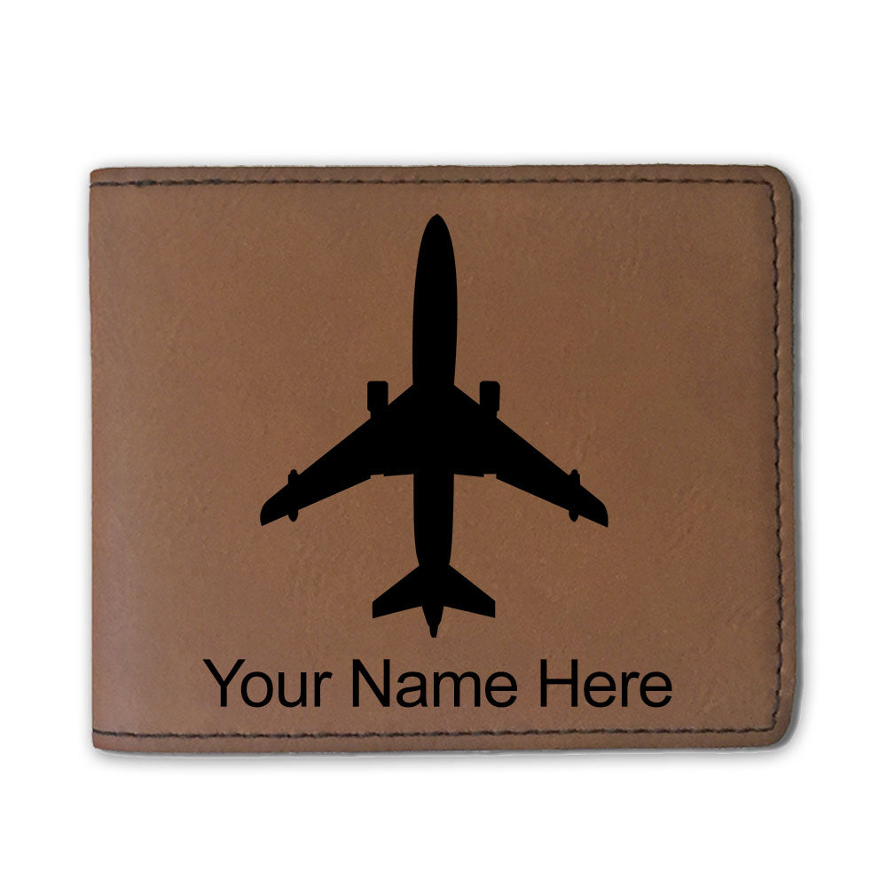 Faux Leather Bi-Fold Wallet, Jet Airplane, Personalized Engraving Included