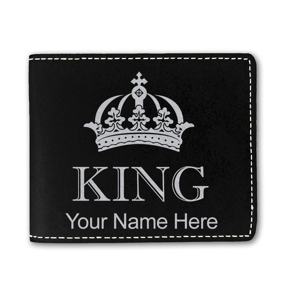 Faux Leather Bi-Fold Wallet, King Crown, Personalized Engraving Included