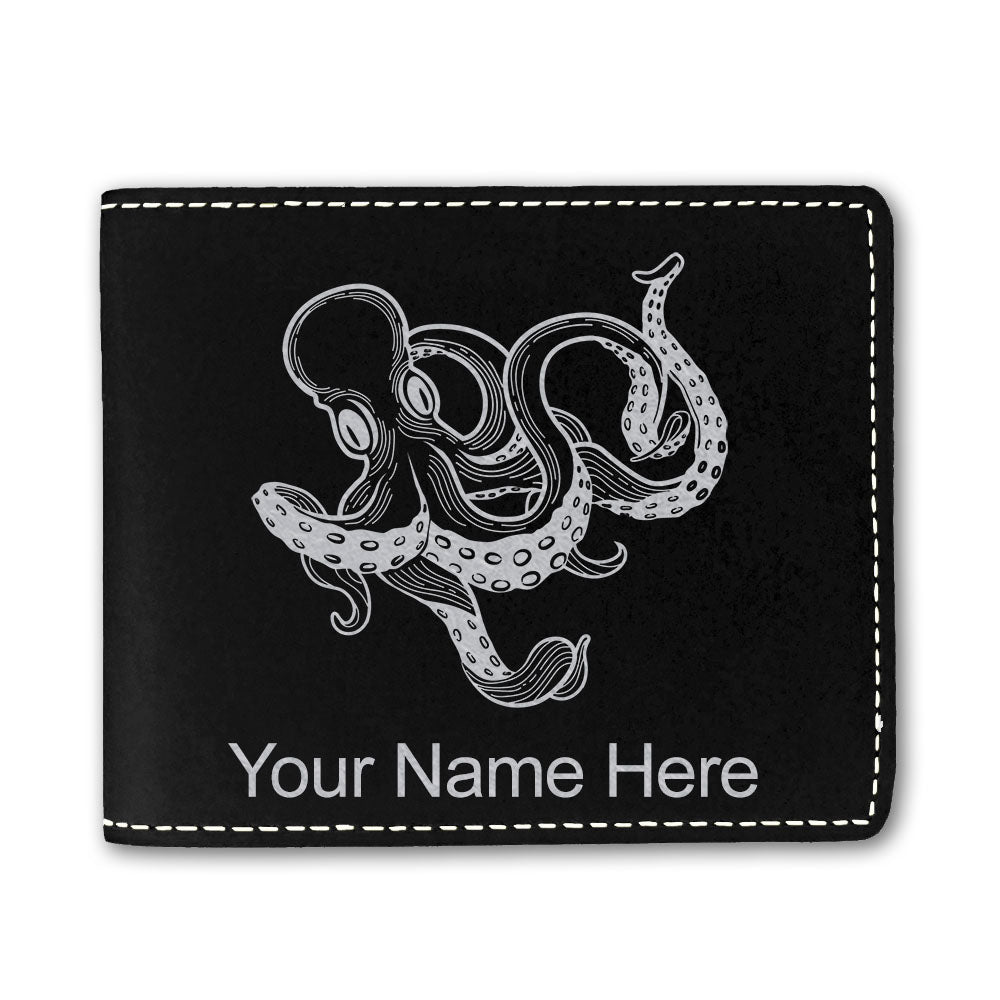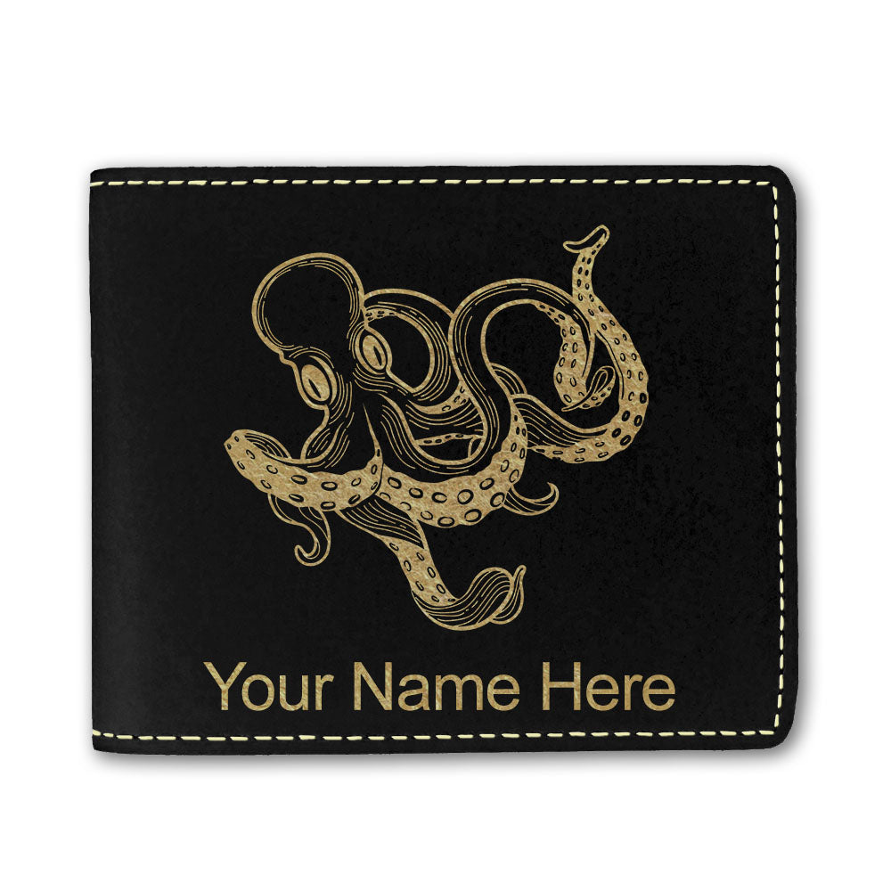 Faux Leather Bi-Fold Wallet, Kraken, Personalized Engraving Included