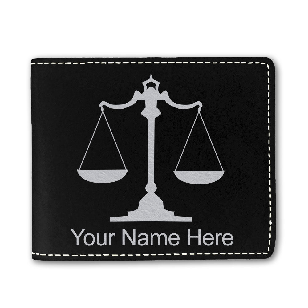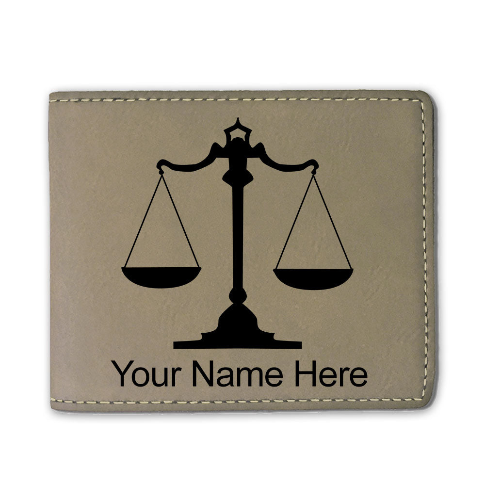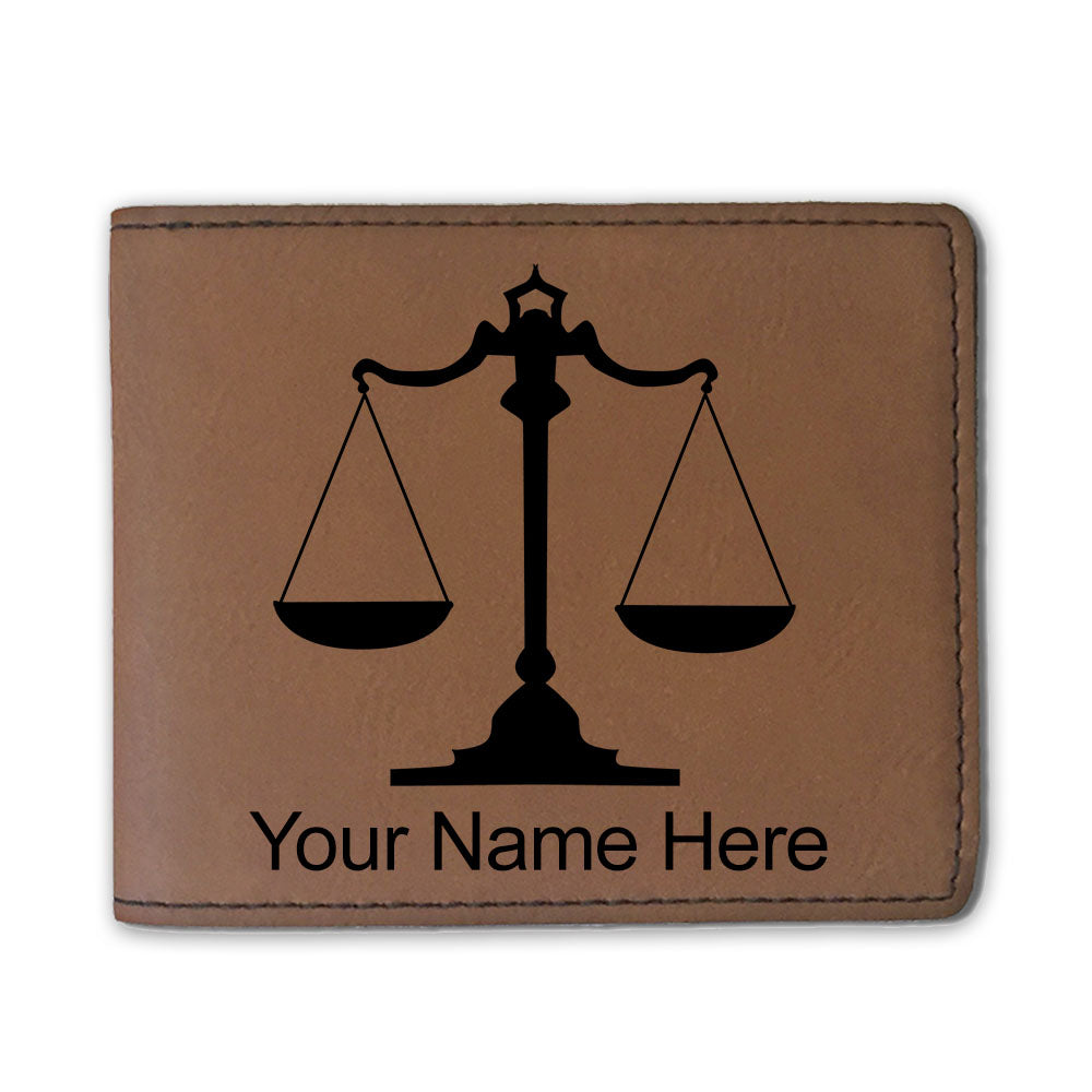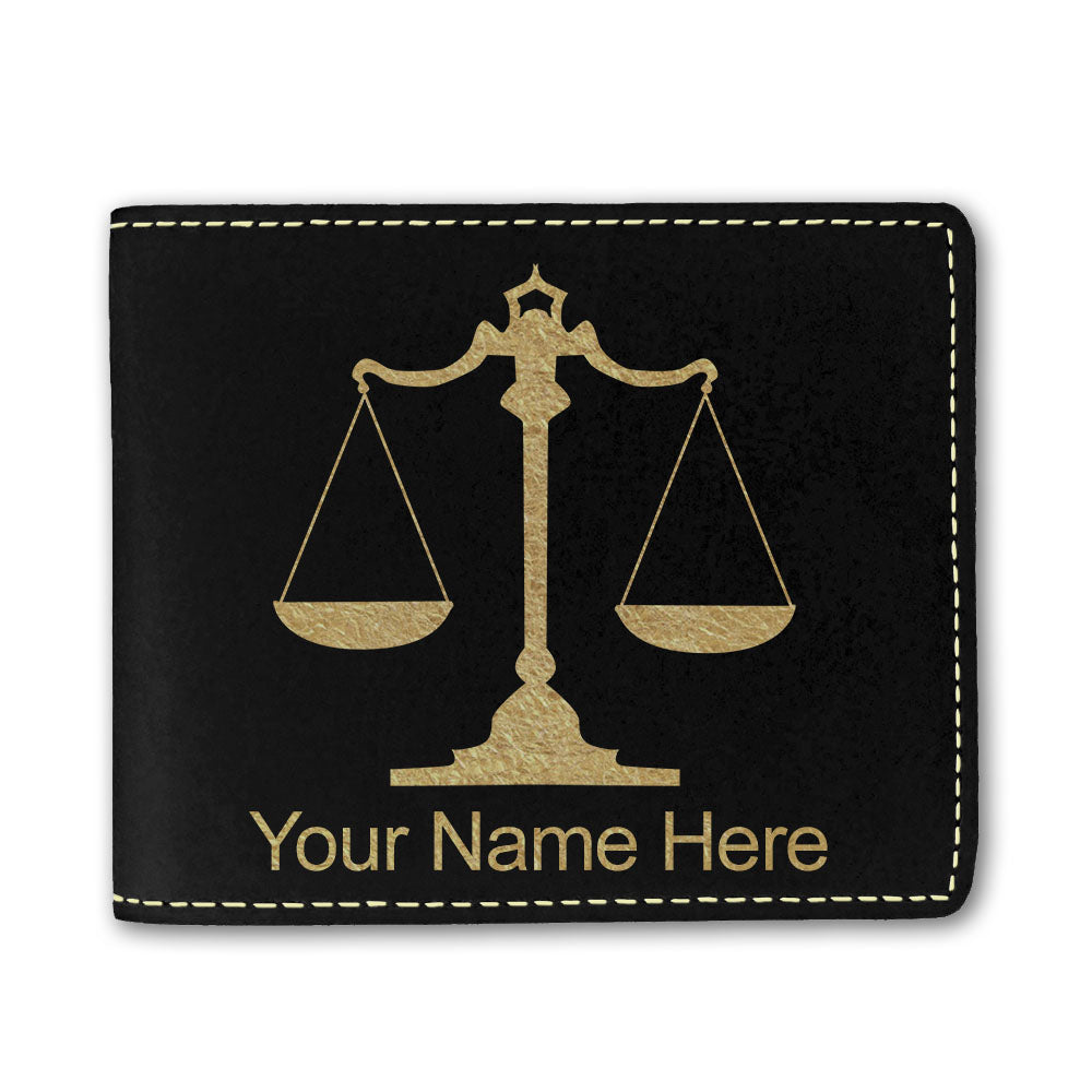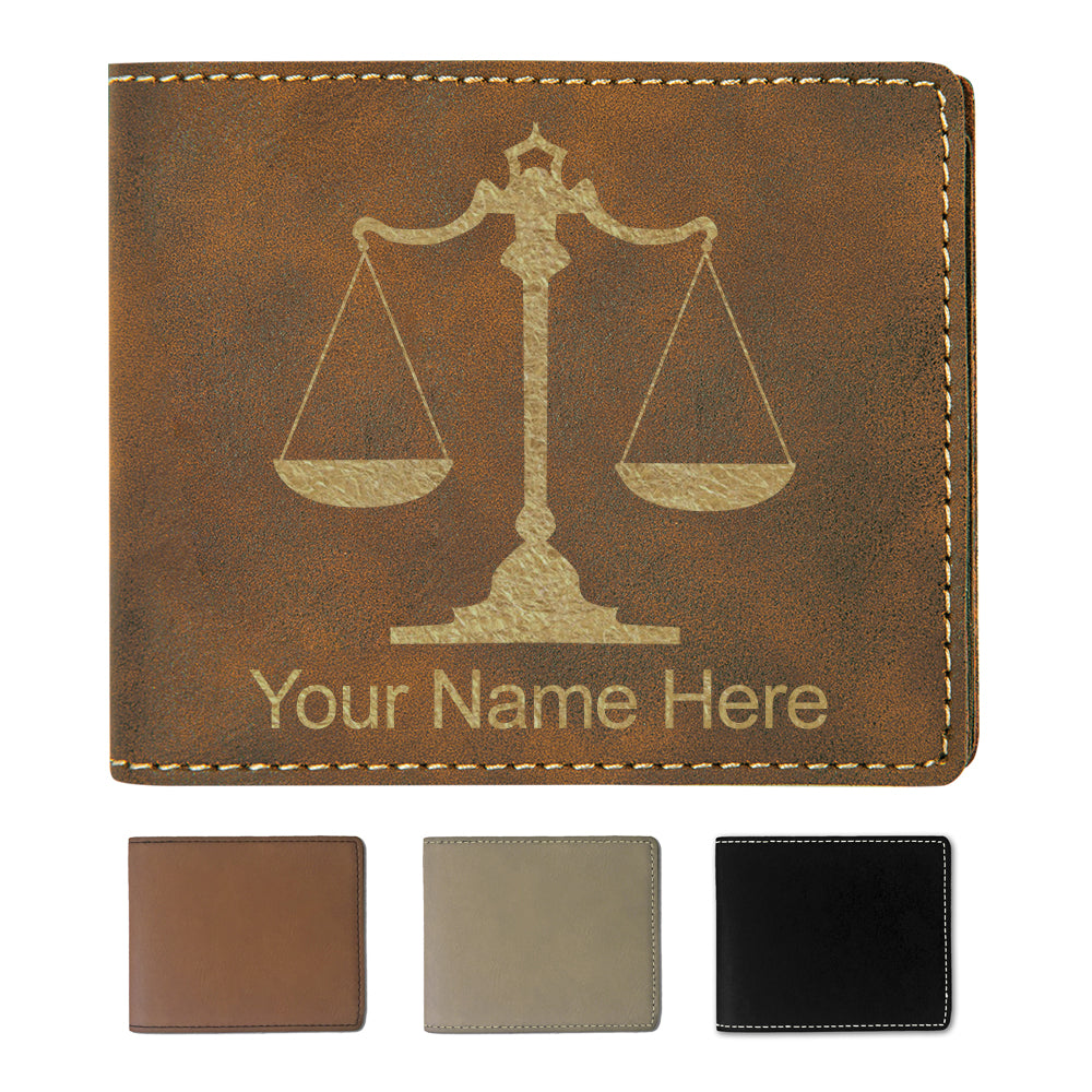 Faux Leather Bi-Fold Wallet, Law Scale, Personalized Engraving Included