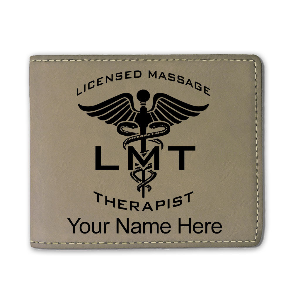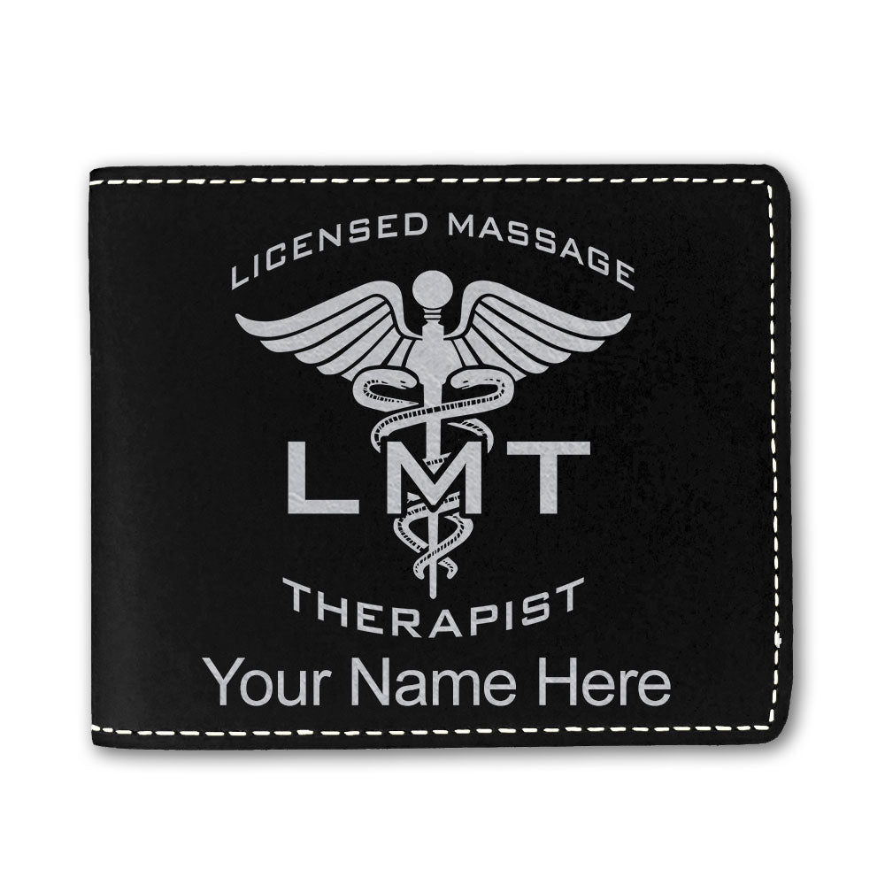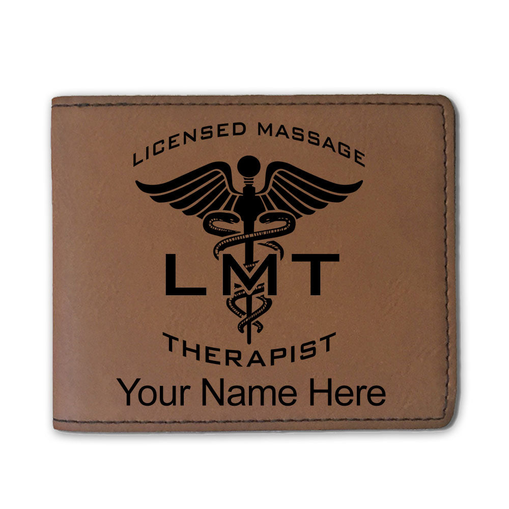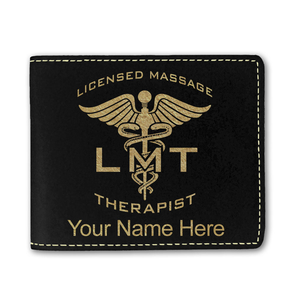Faux Leather Bi-Fold Wallet, LMT Licensed Massage Therapist, Personalized Engraving Included