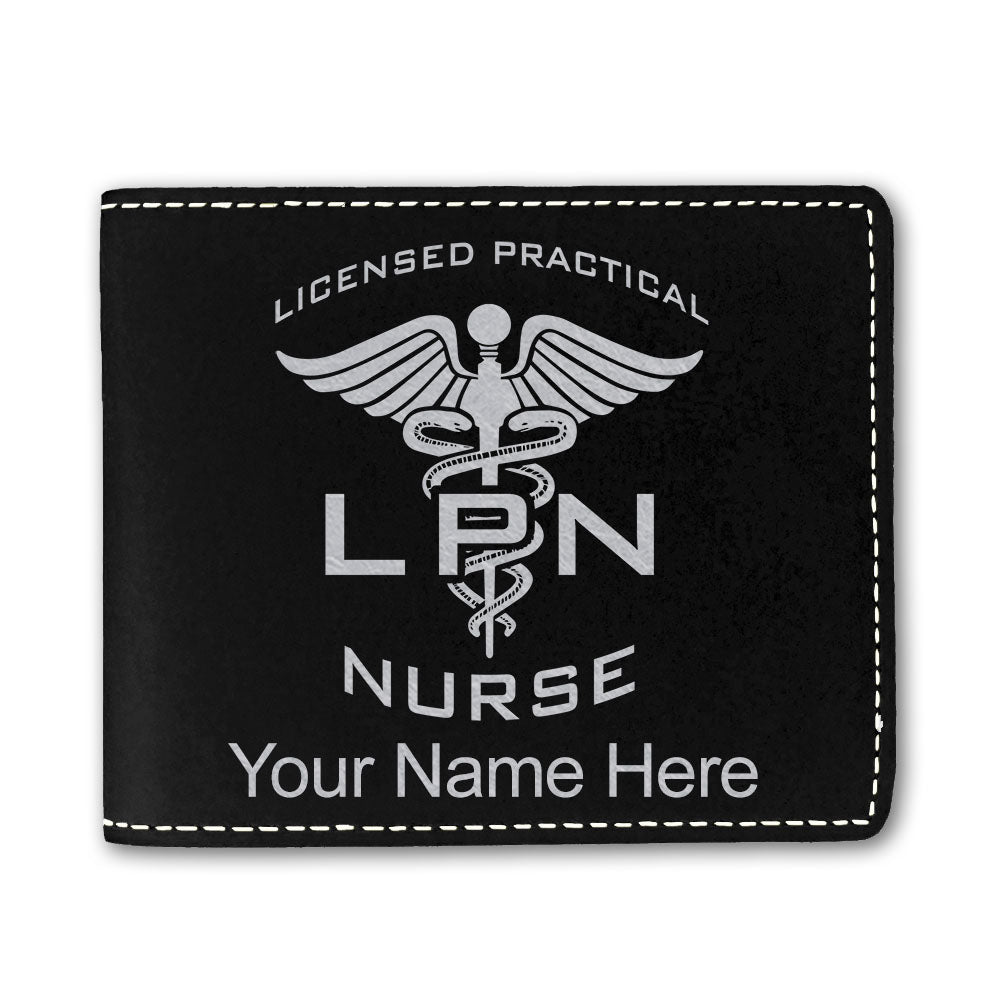 Faux Leather Bi-Fold Wallet, LPN Licensed Practical Nurse, Personalized Engraving Included