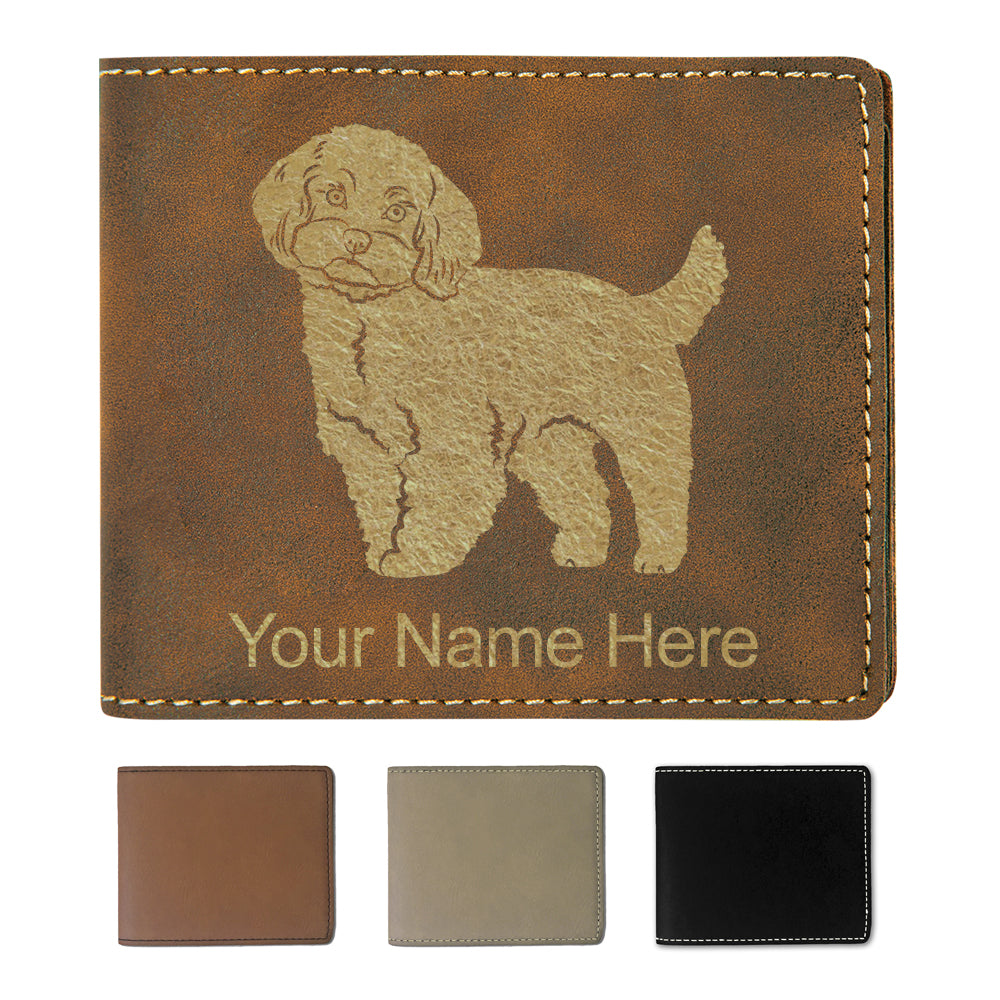 Faux Leather Bi-Fold Wallet, Maltese Dog, Personalized Engraving Included