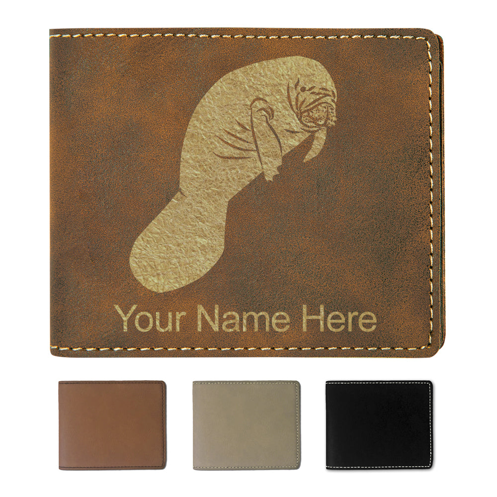 Faux Leather Bi-Fold Wallet, Manatee, Personalized Engraving Included