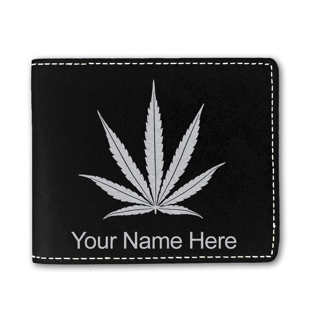 Faux Leather Bi-Fold Wallet, Marijuana leaf, Personalized Engraving Included