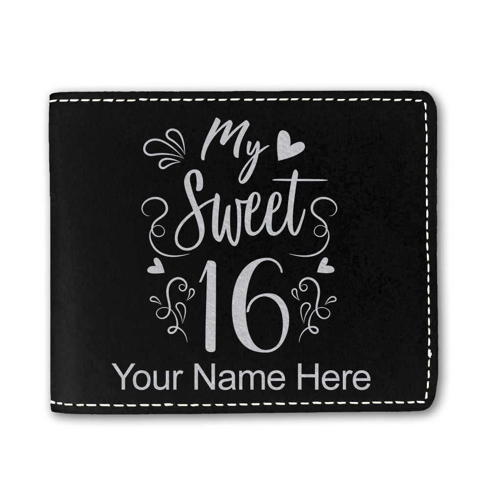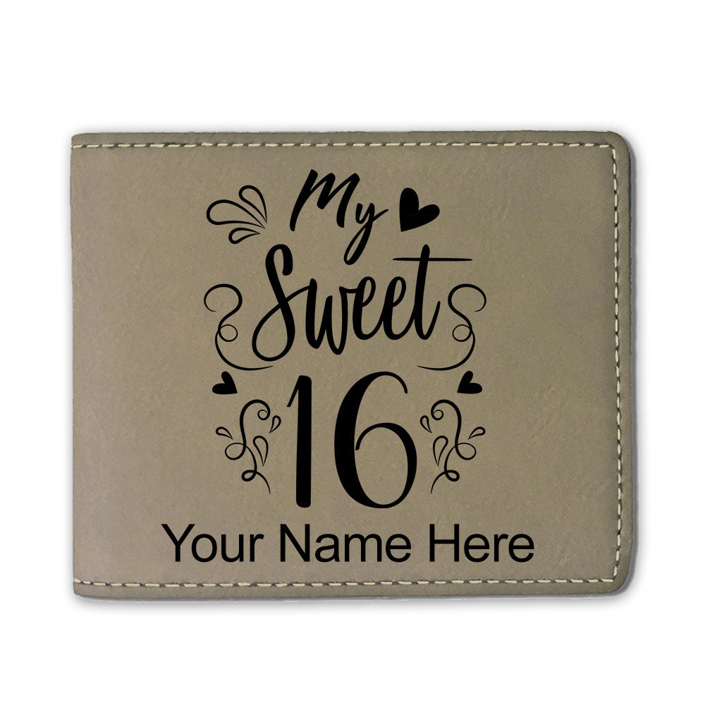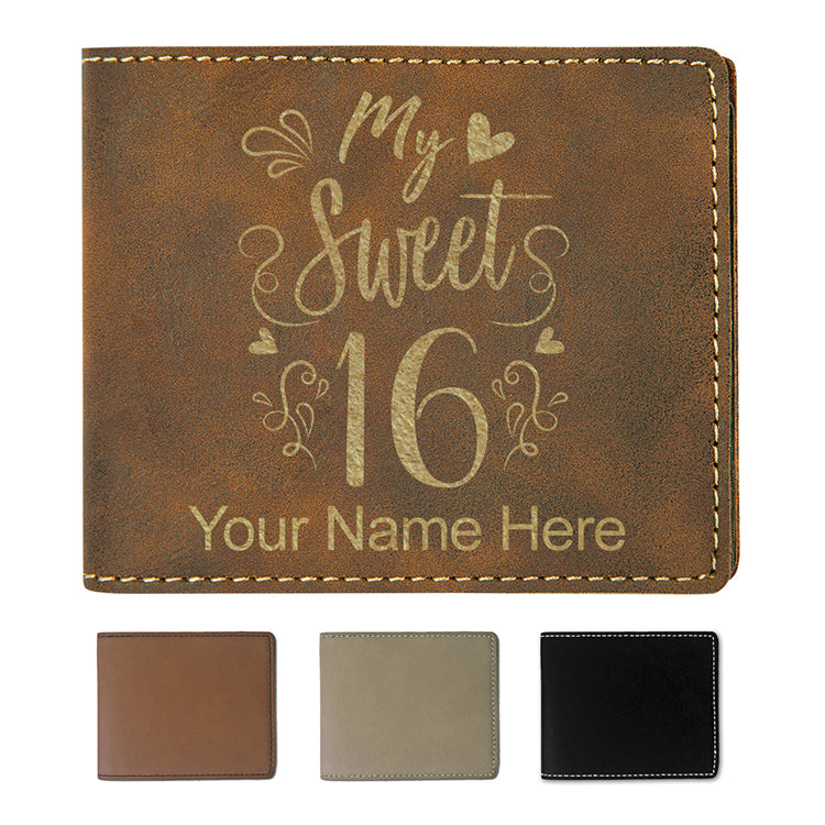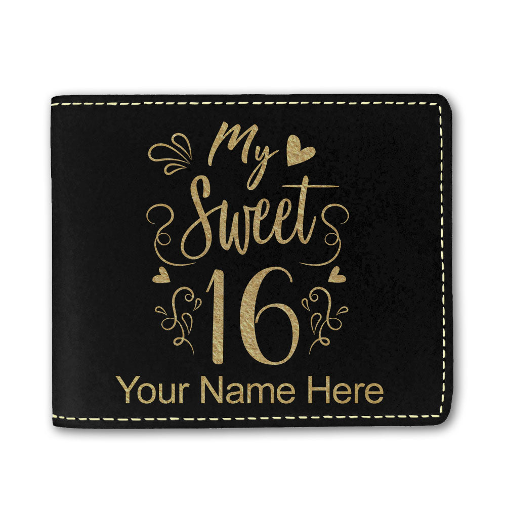 Faux Leather Bi-Fold Wallet, My Sweet 16, Personalized Engraving Included