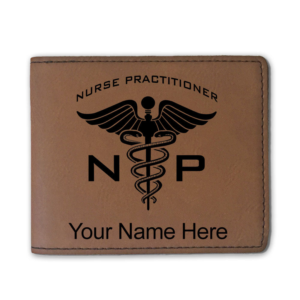Faux Leather Bi-Fold Wallet, NP Nurse Practitioner, Personalized Engraving Included