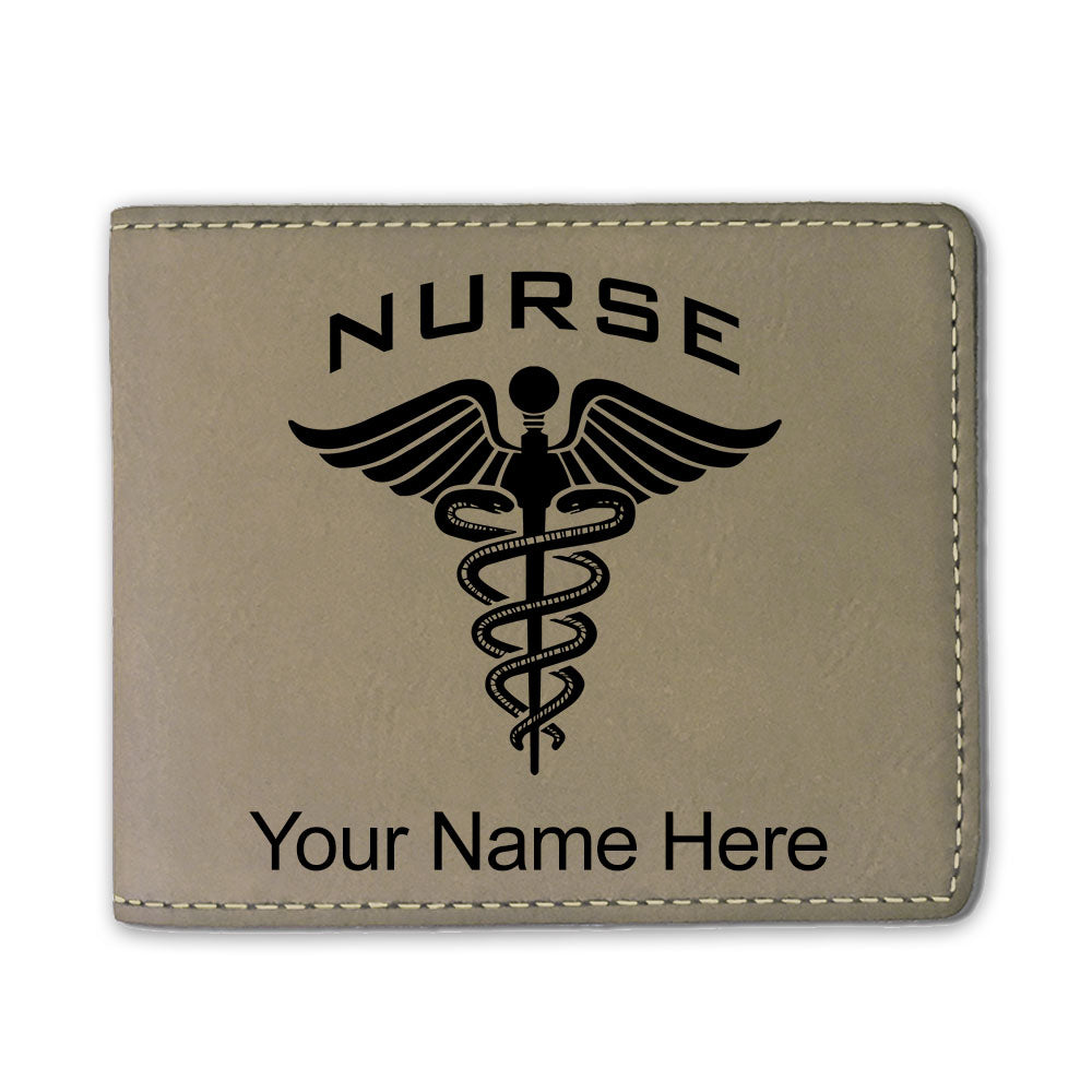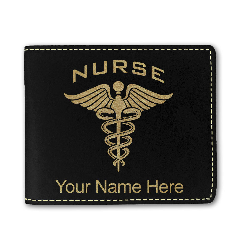 Faux Leather Bi-Fold Wallet, Nurse, Personalized Engraving Included