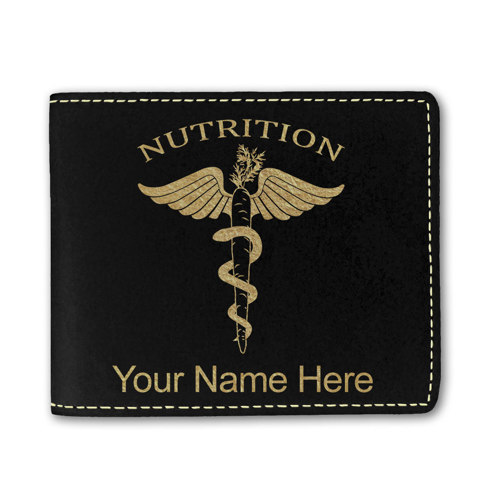 Faux Leather Bi-Fold Wallet, Nutritionist, Personalized Engraving Included