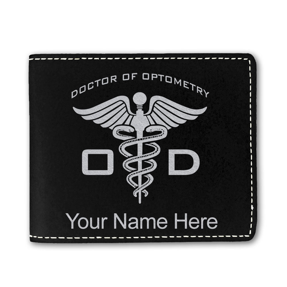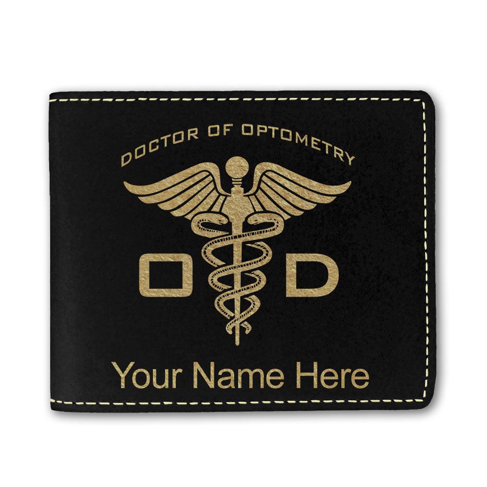 Faux Leather Bi-Fold Wallet, OD Doctor of Optometry, Personalized Engraving Included