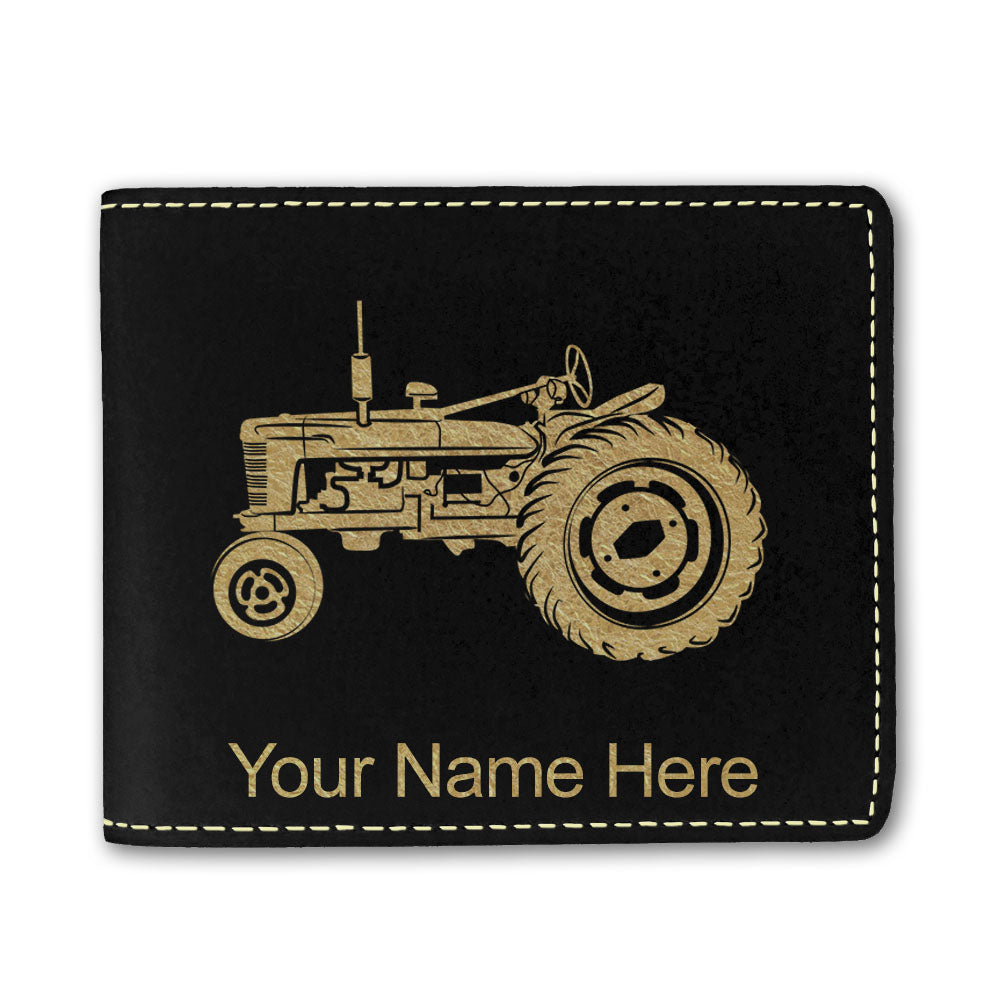 Faux Leather Bi-Fold Wallet, Old Farm Tractor, Personalized Engraving Included