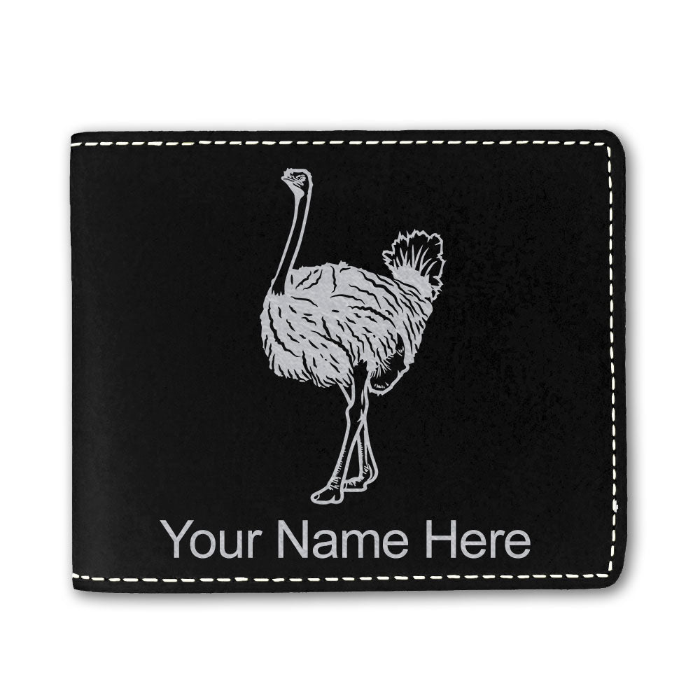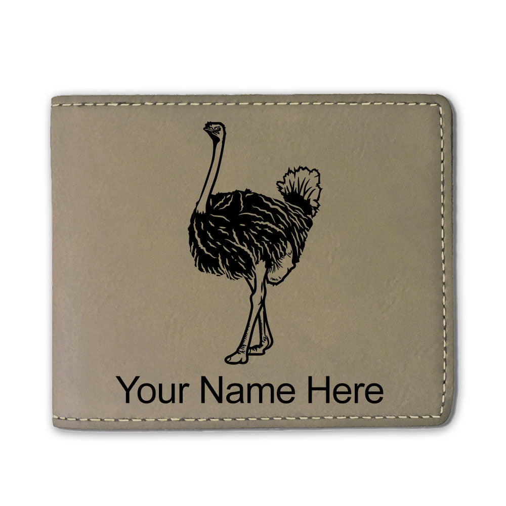 Faux Leather Bi-Fold Wallet, Ostrich, Personalized Engraving Included