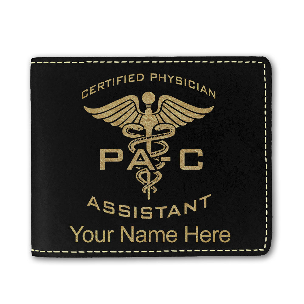 Faux Leather Bi-Fold Wallet, PA-C Certified Physician Assistant, Personalized Engraving Included