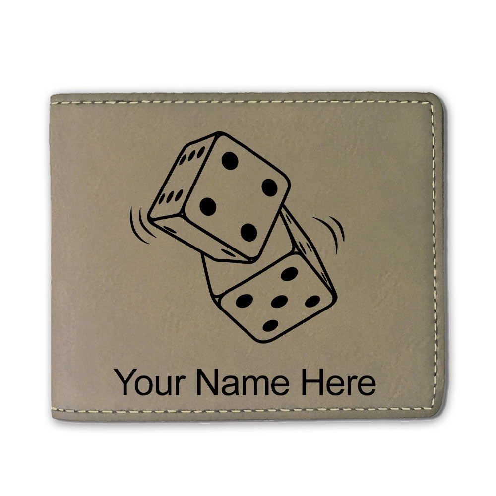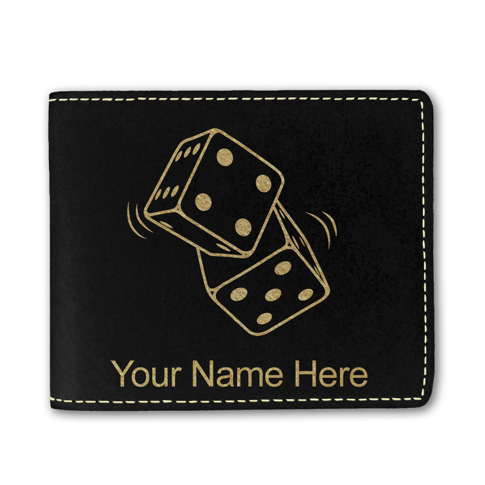Faux Leather Bi-Fold Wallet, Pair of Dice, Personalized Engraving Included