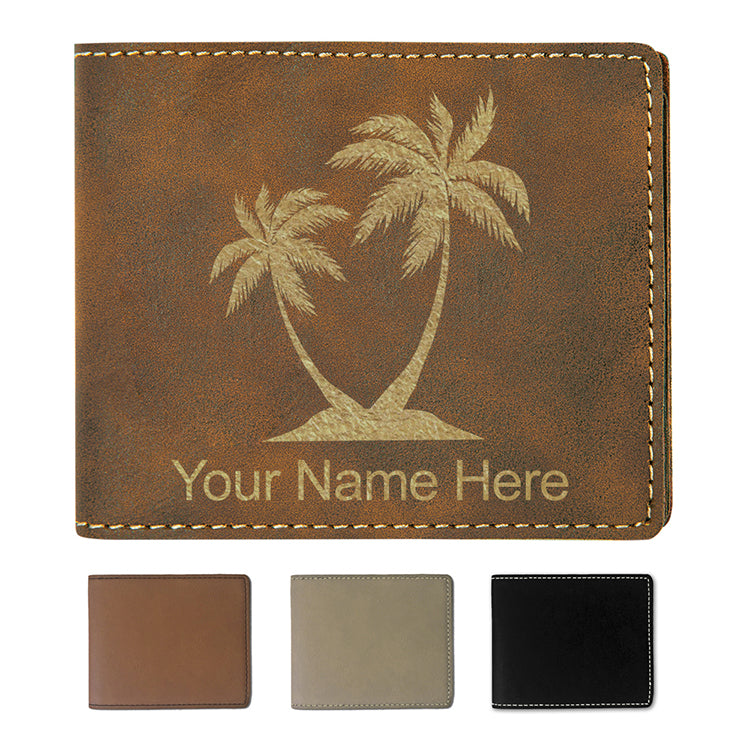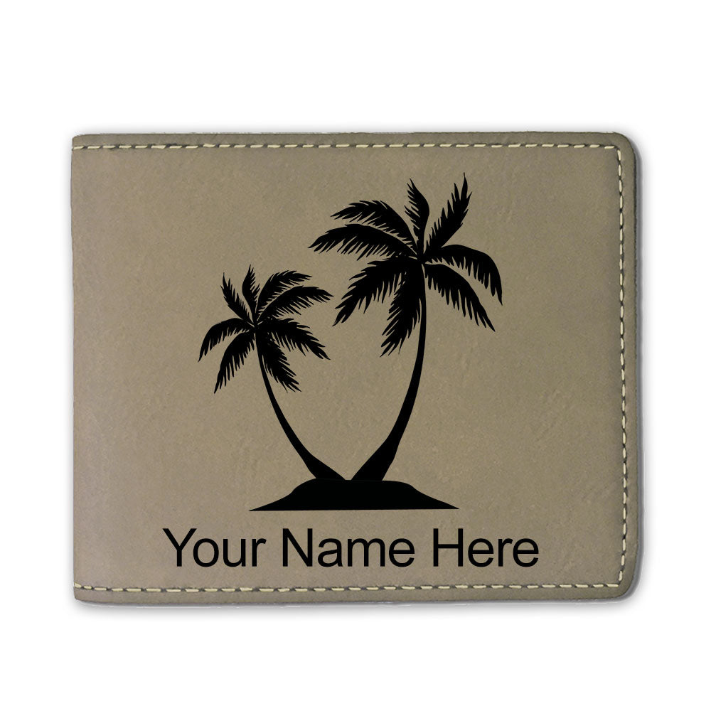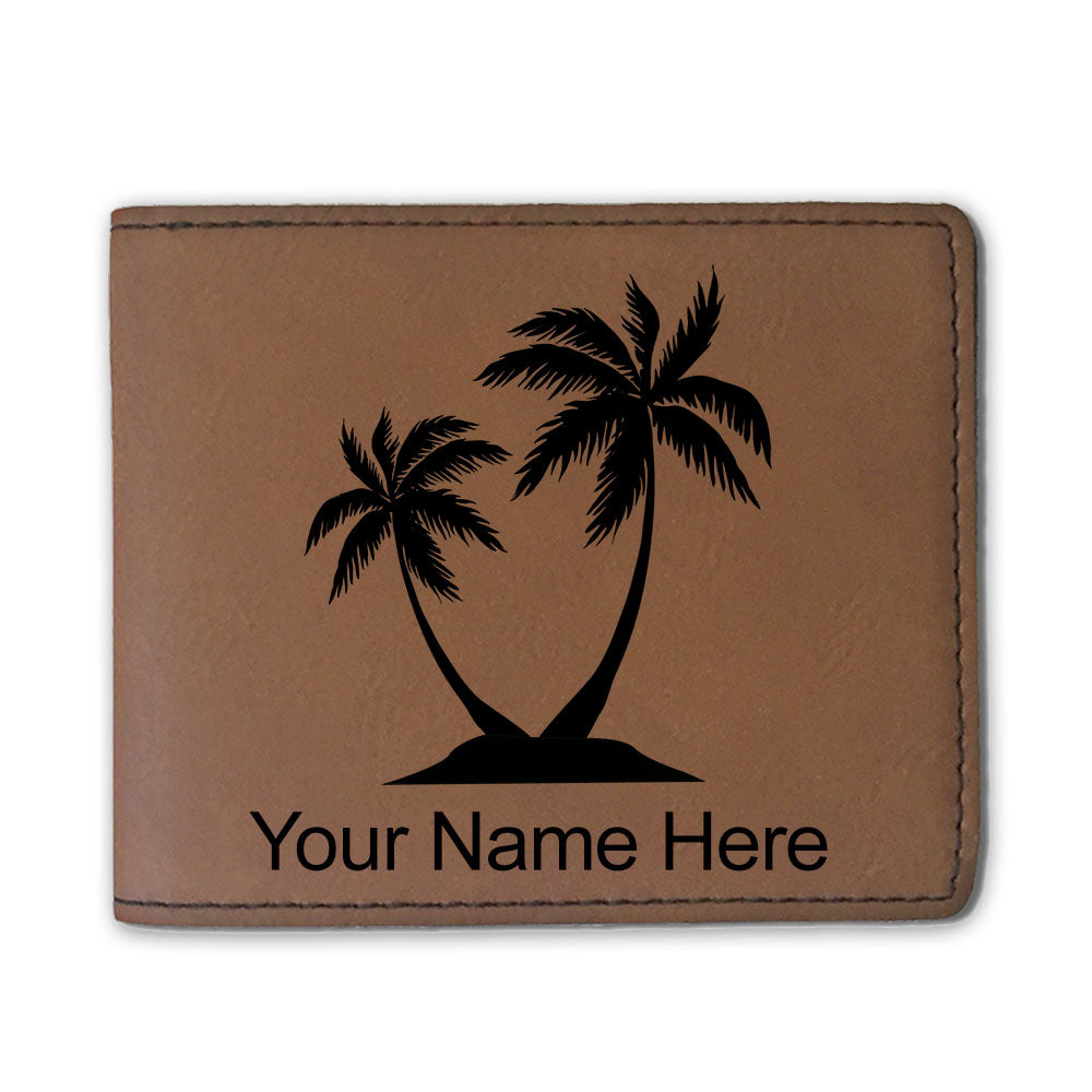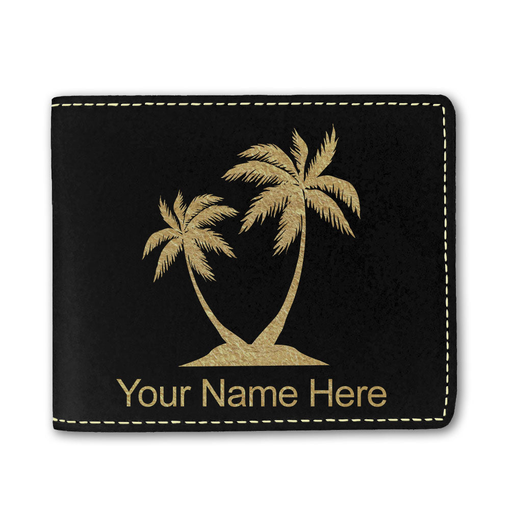 Faux Leather Bi-Fold Wallet, Palm Trees, Personalized Engraving Included