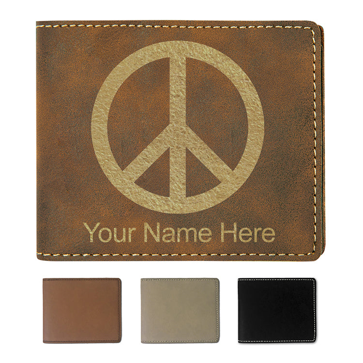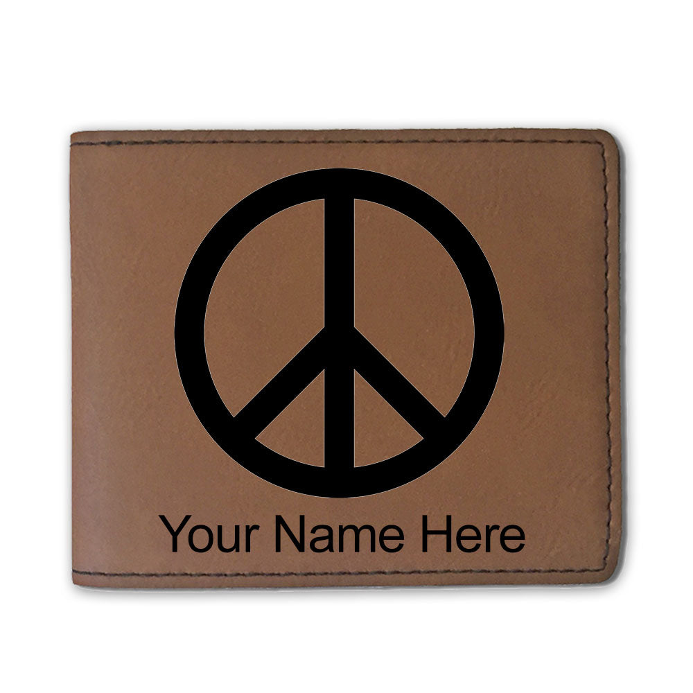 Faux Leather Bi-Fold Wallet, Peace Sign, Personalized Engraving Included