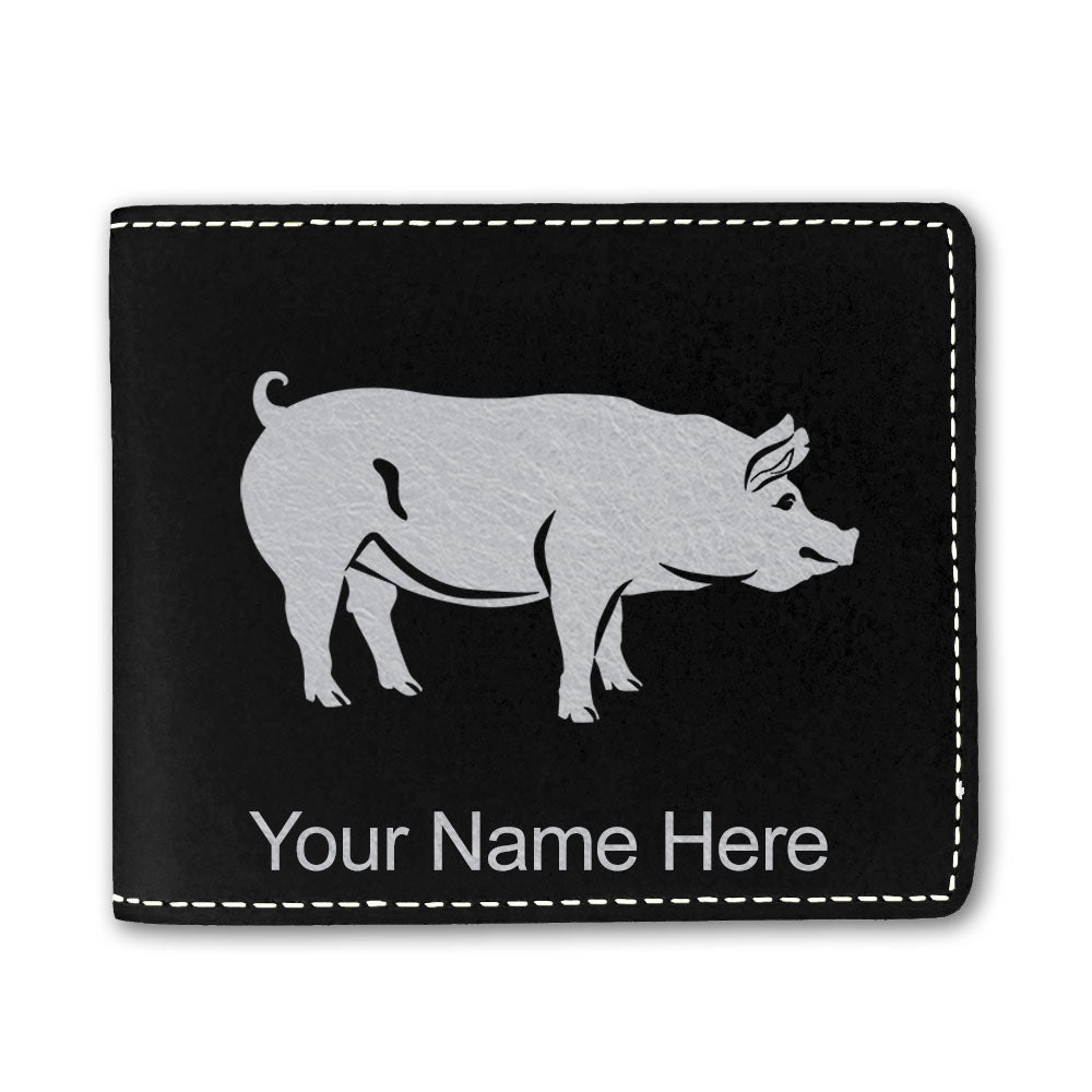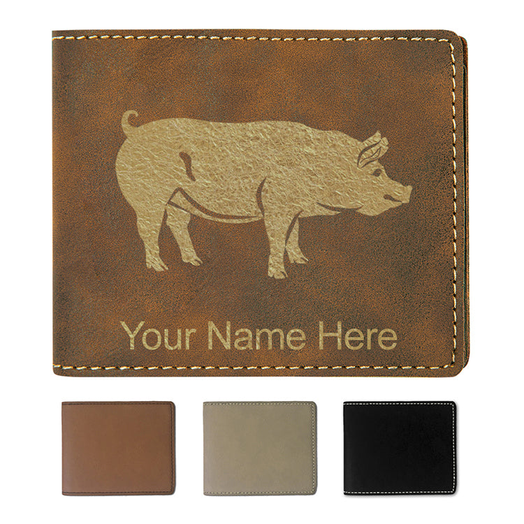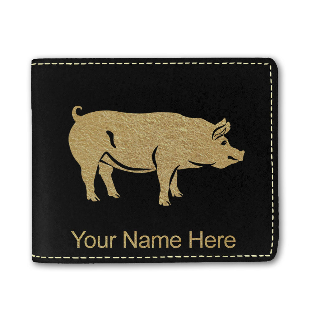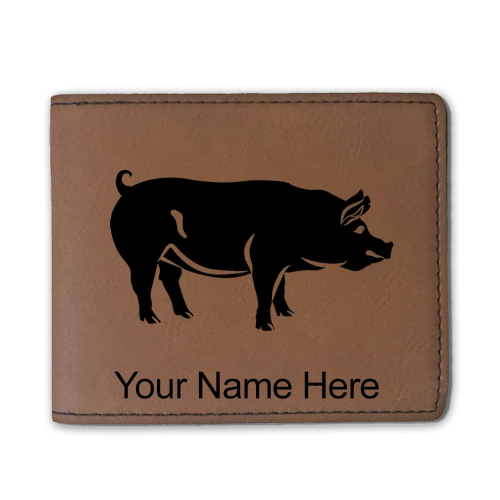 Faux Leather Bi-Fold Wallet, Pig, Personalized Engraving Included