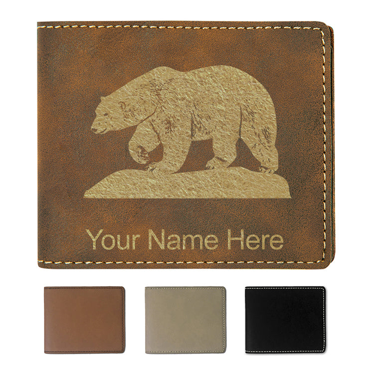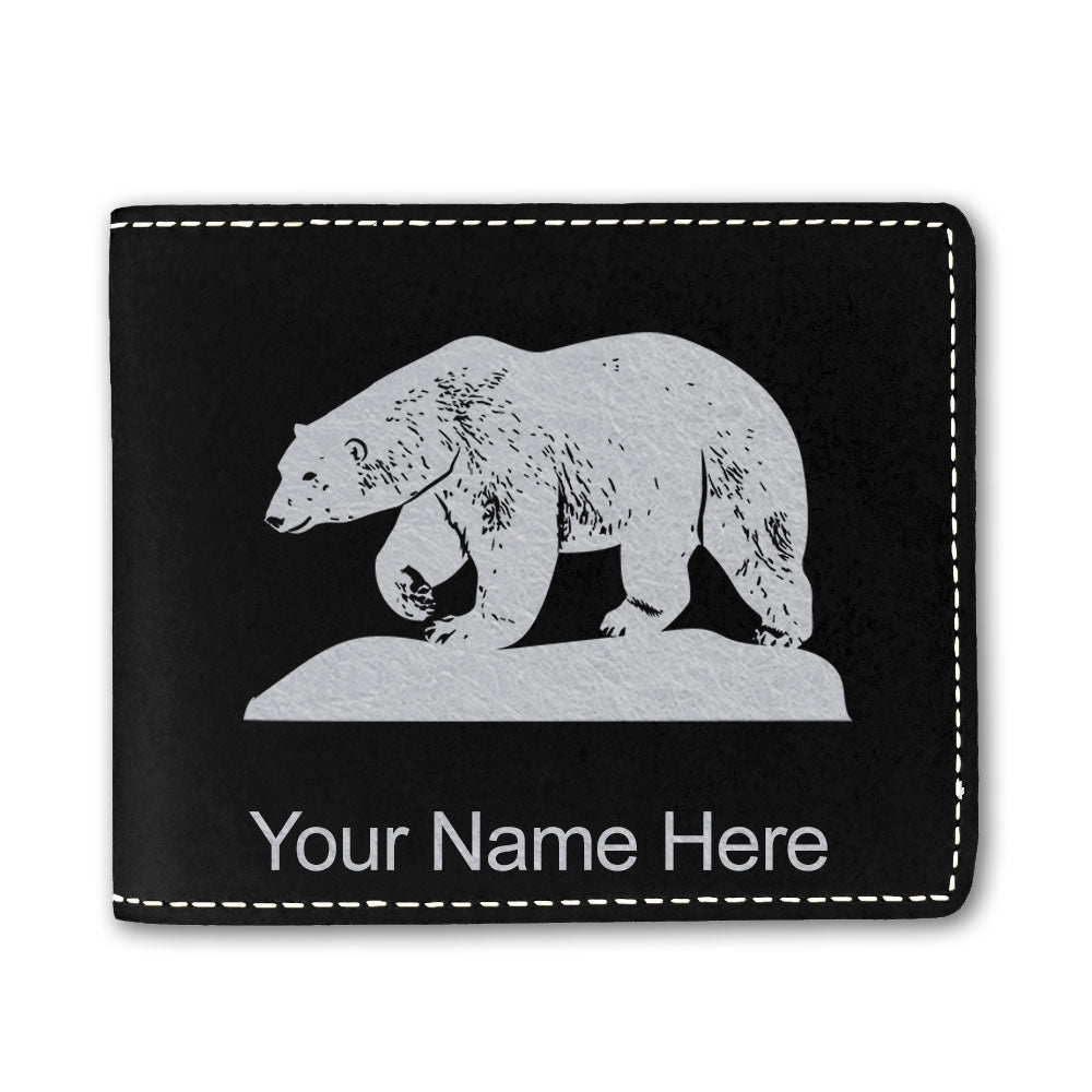 Faux Leather Bi-Fold Wallet, Polar Bear, Personalized Engraving Included