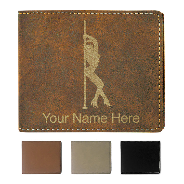 Faux Leather Bi-Fold Wallet, Pole Dancer, Personalized Engraving Included