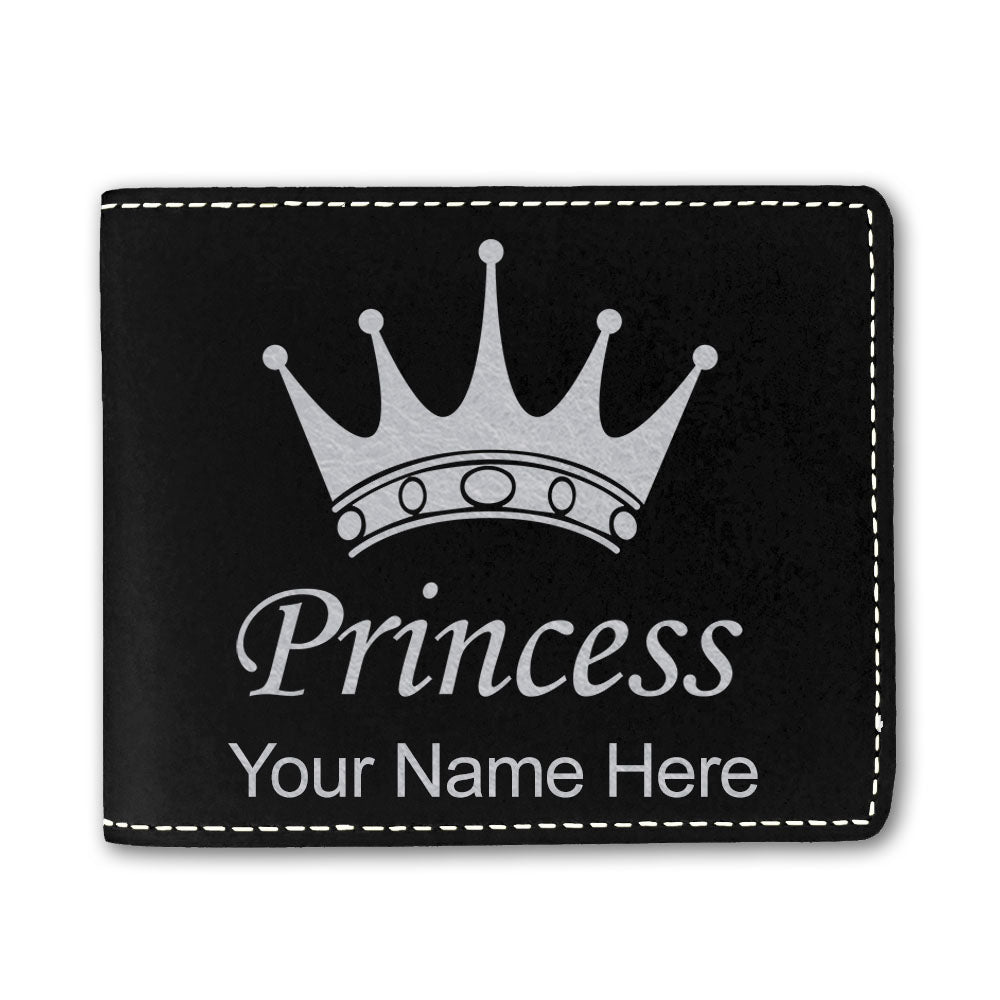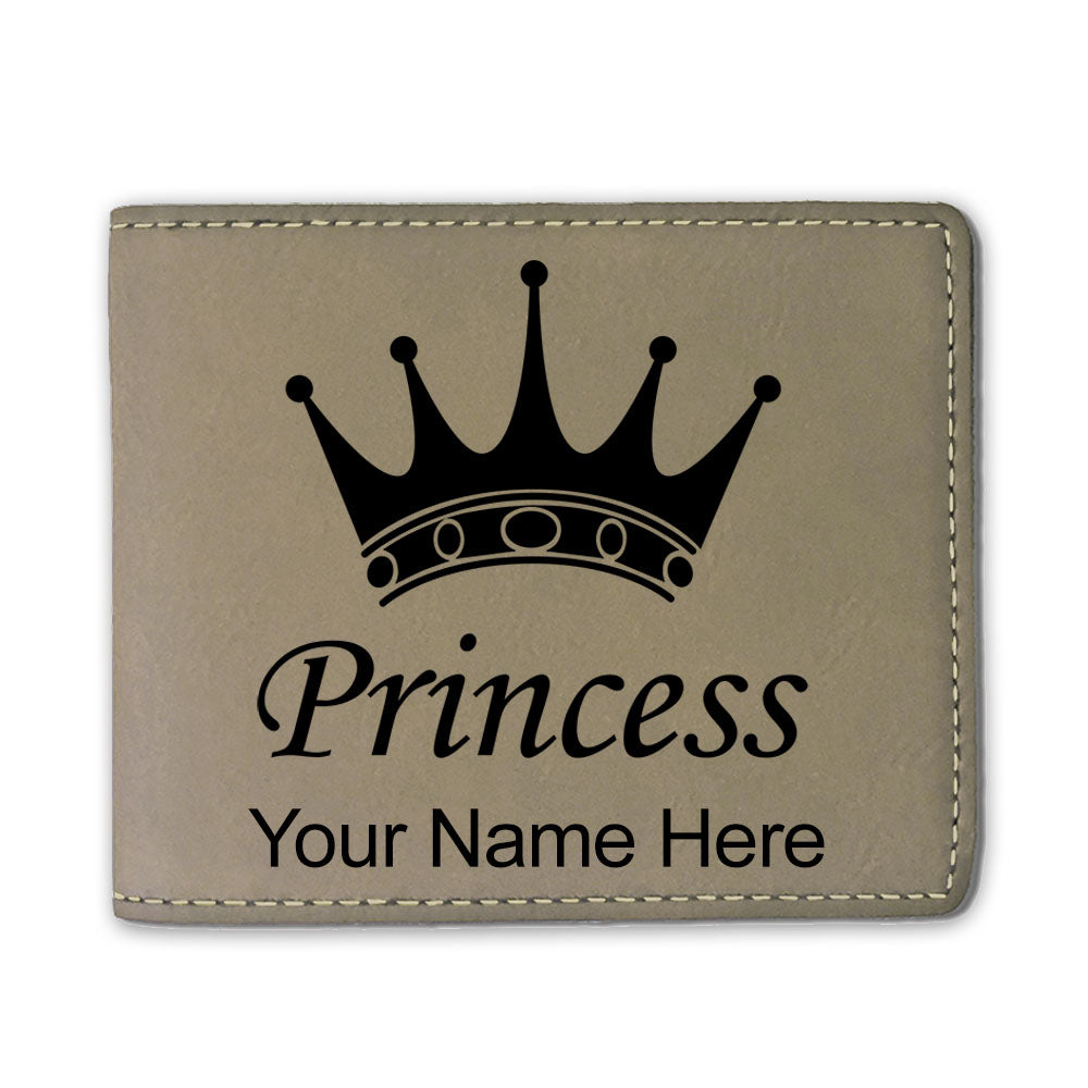 Faux Leather Bi-Fold Wallet, Princess Crown, Personalized Engraving Included