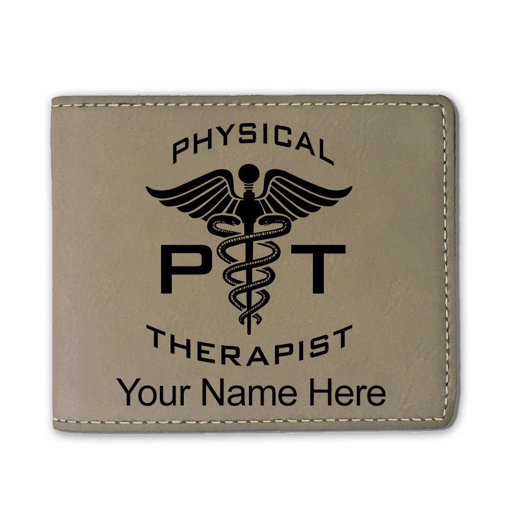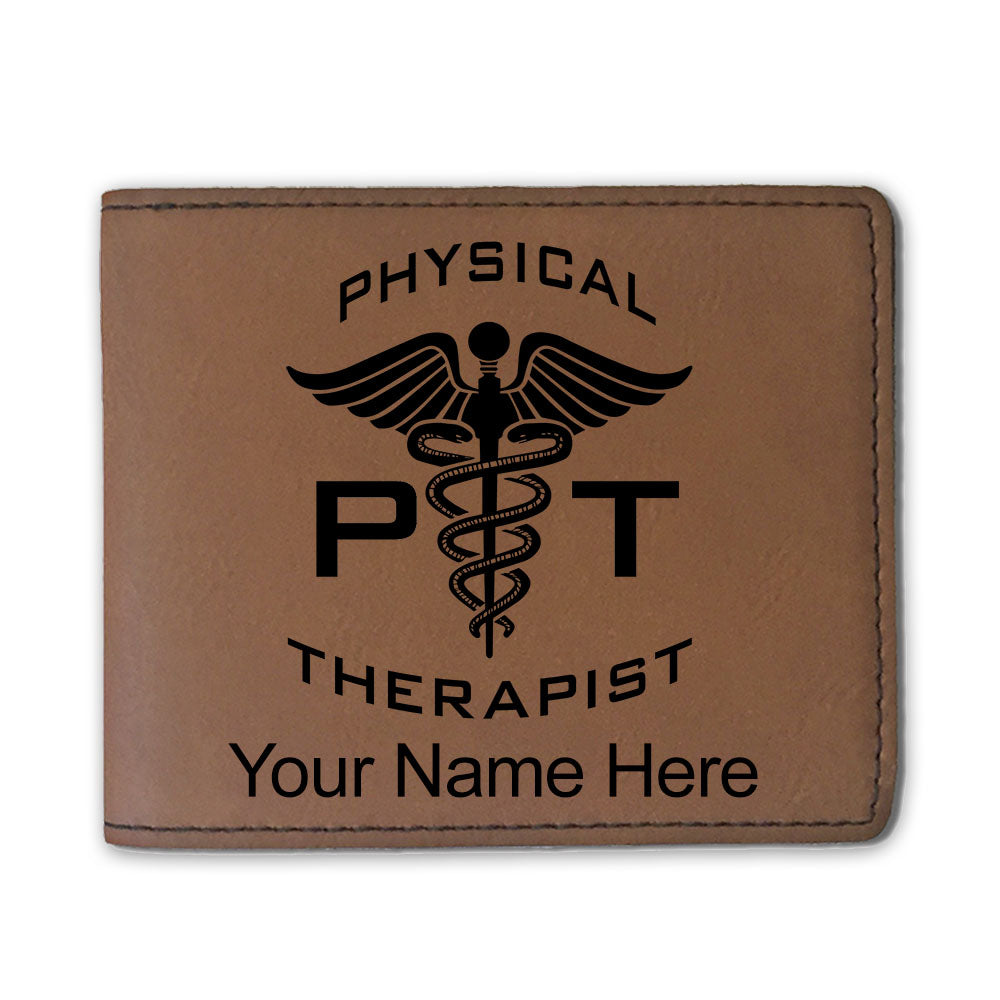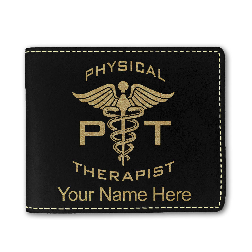 Faux Leather Bi-Fold Wallet, PT Physical Therapist, Personalized Engraving Included