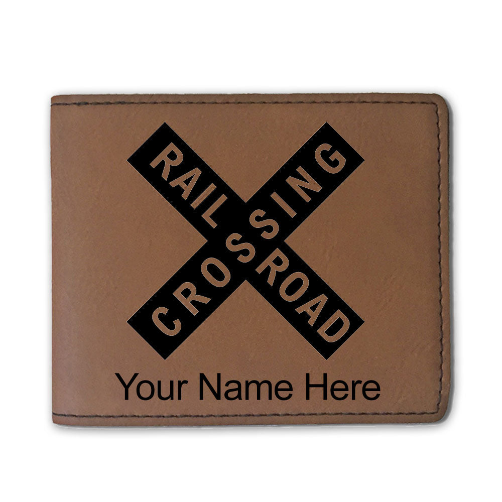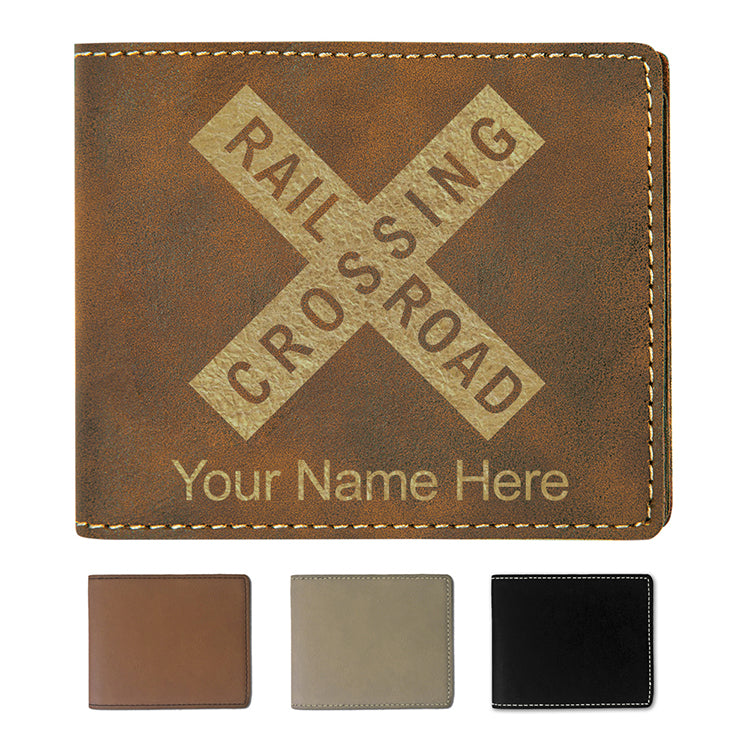 Faux Leather Bi-Fold Wallet, Railroad Crossing Sign 1, Personalized Engraving Included