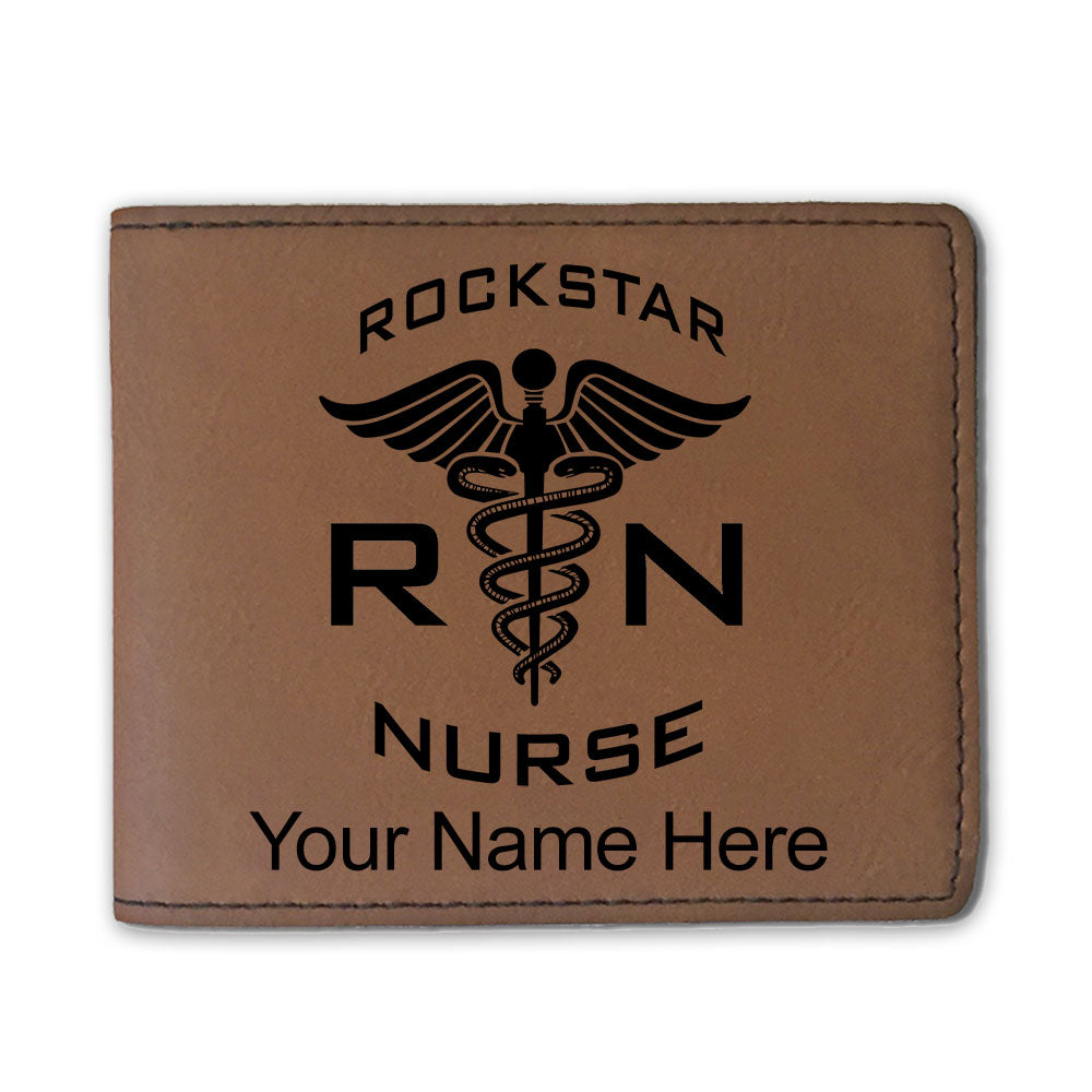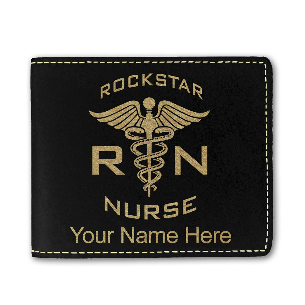 Faux Leather Bi-Fold Wallet, RN Rockstar Nurse, Personalized Engraving Included