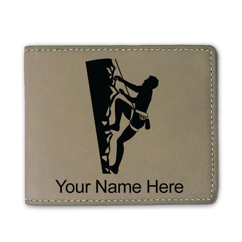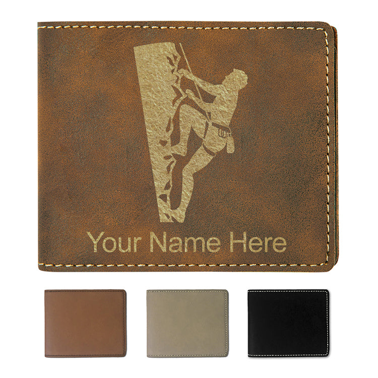Faux Leather Bi-Fold Wallet, Rock Climber, Personalized Engraving Included