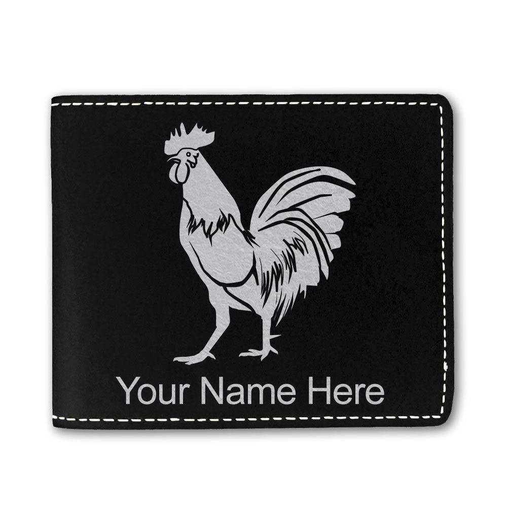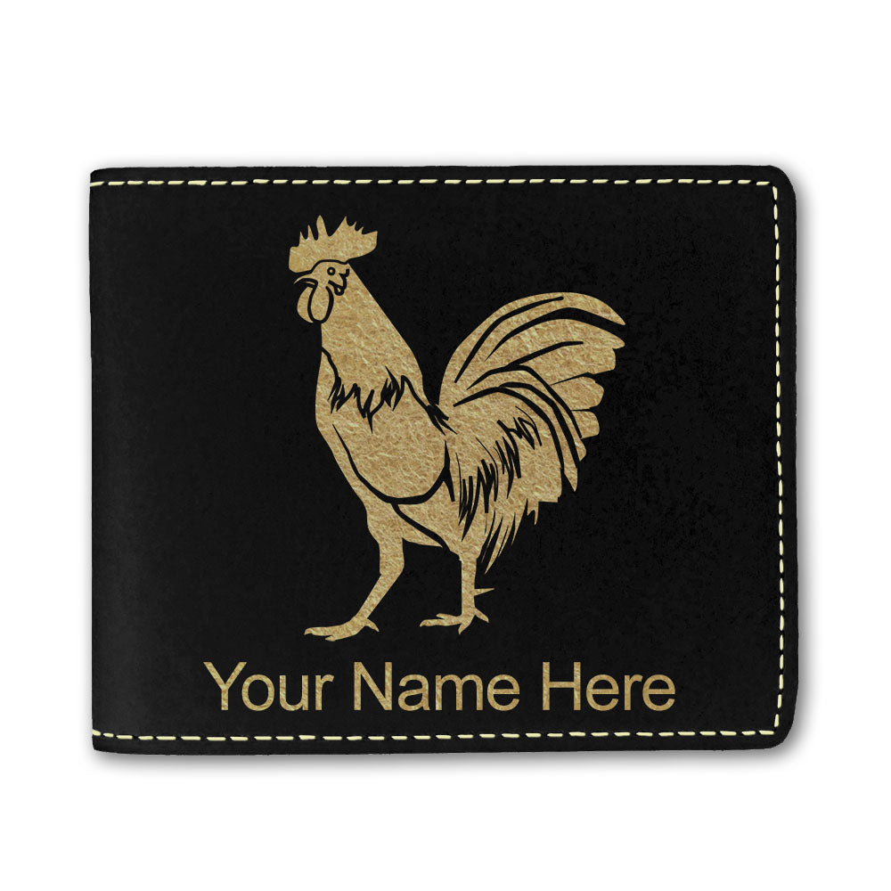 Faux Leather Bi-Fold Wallet, Rooster, Personalized Engraving Included