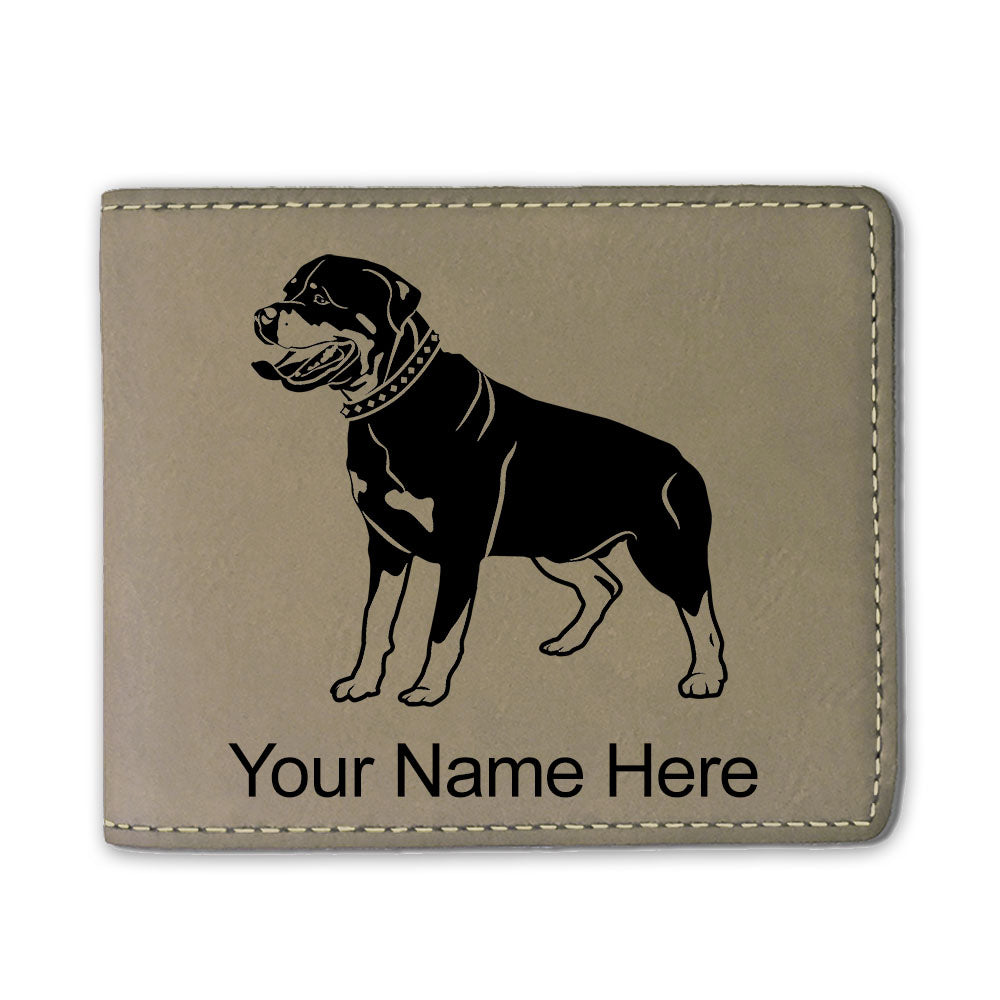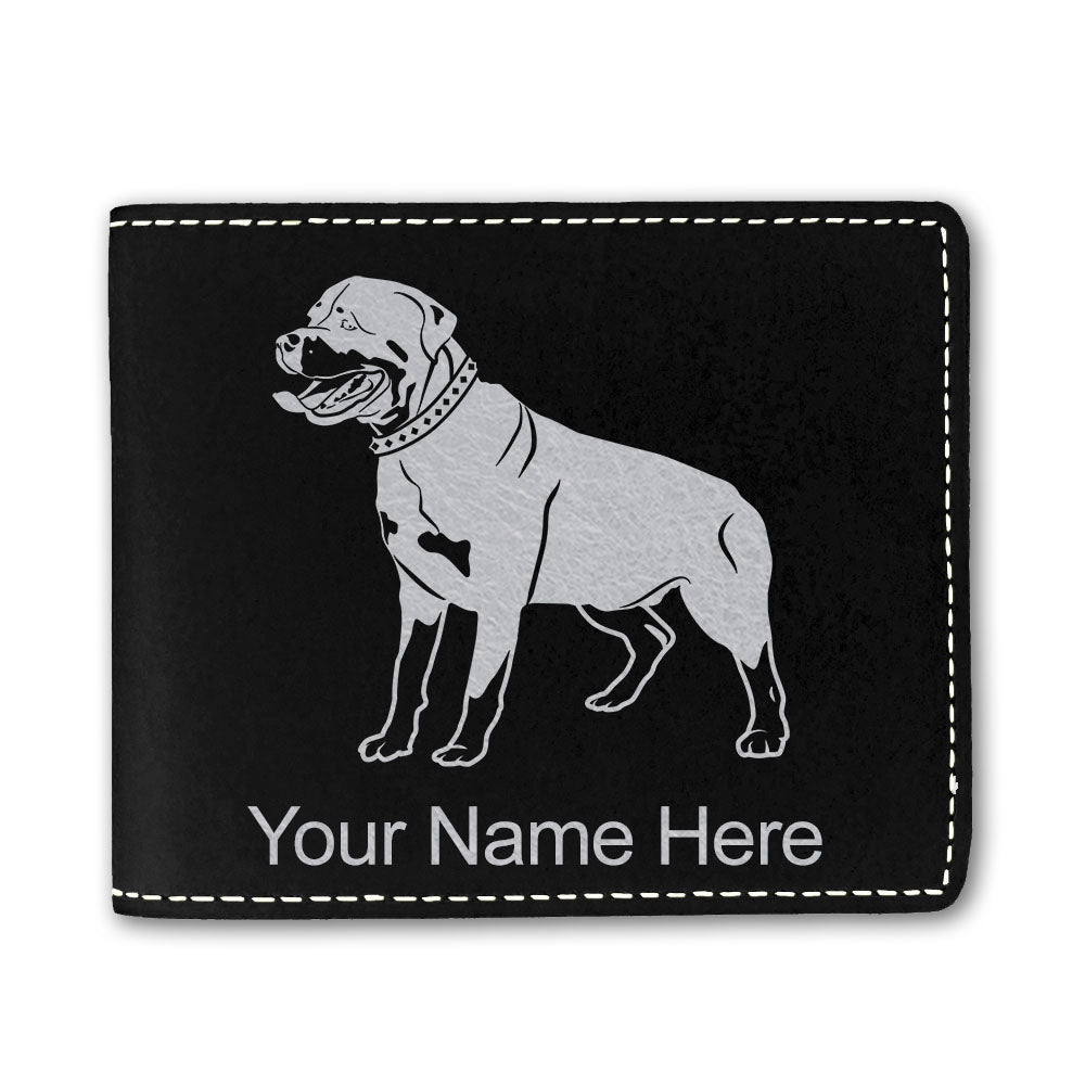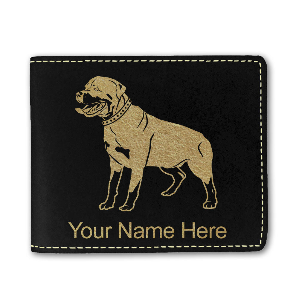 Faux Leather Bi-Fold Wallet, Rottweiler Dog, Personalized Engraving Included