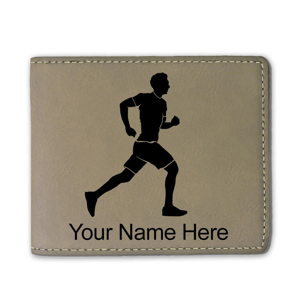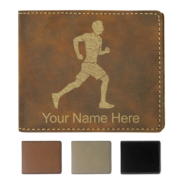 Faux Leather Bi-Fold Wallet, Running Man, Personalized Engraving Included