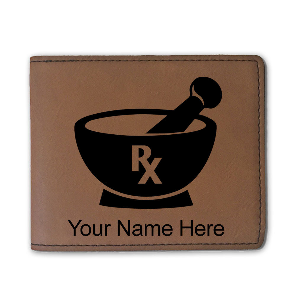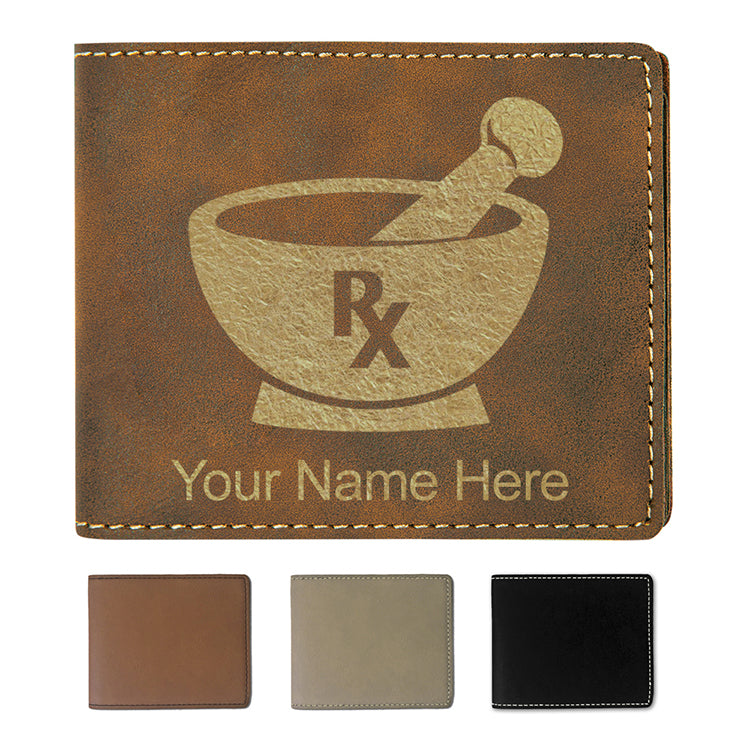 Faux Leather Bi-Fold Wallet, Rx Pharmacy Symbol, Personalized Engraving Included