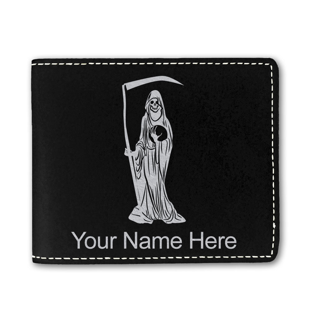 Faux Leather Bi-Fold Wallet, Santa Muerte, Personalized Engraving Included