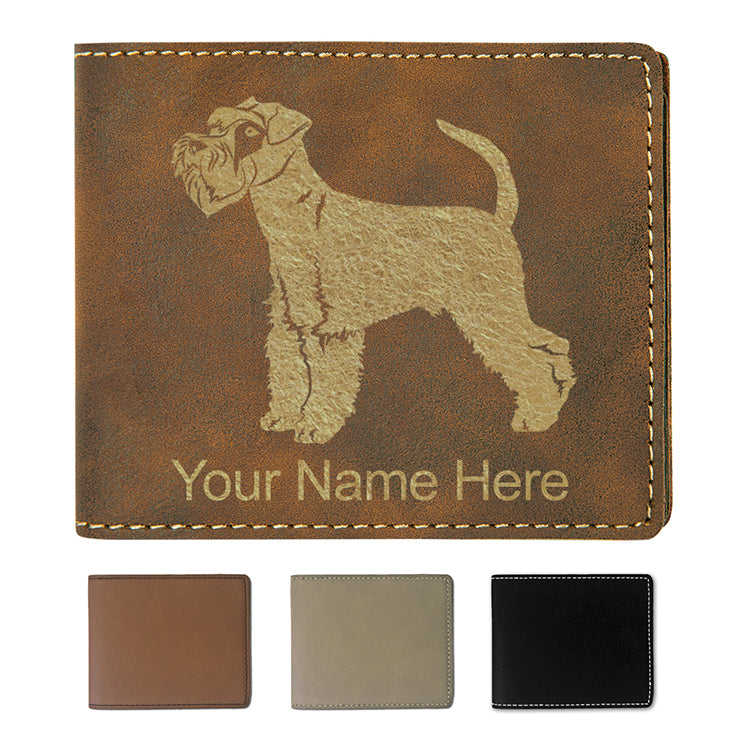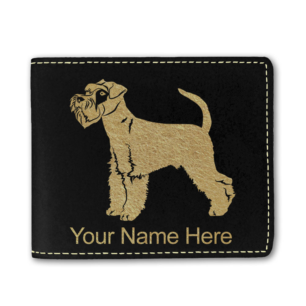 Faux Leather Bi-Fold Wallet, Schnauzer Dog, Personalized Engraving Included