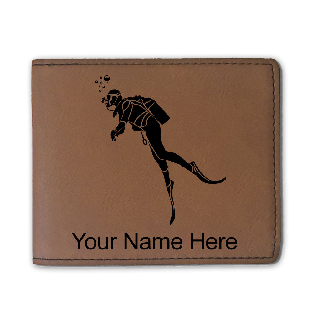 Faux Leather Bi-Fold Wallet, Scuba Diver, Personalized Engraving Included