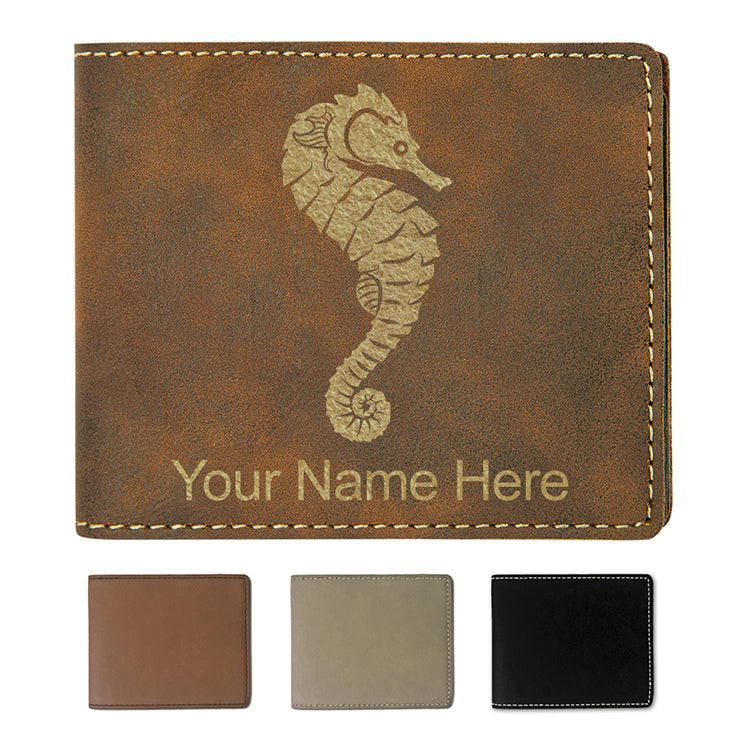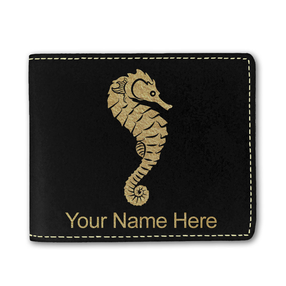 Faux Leather Bi-Fold Wallet, Seahorse, Personalized Engraving Included