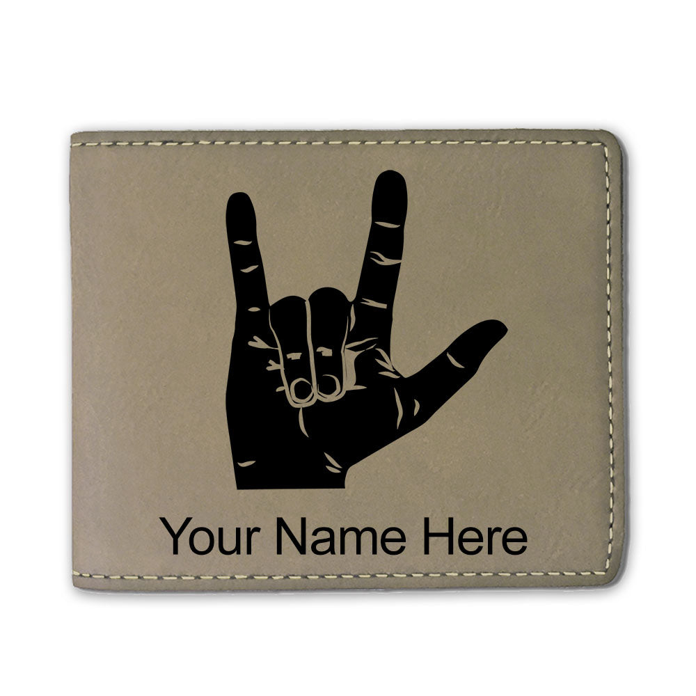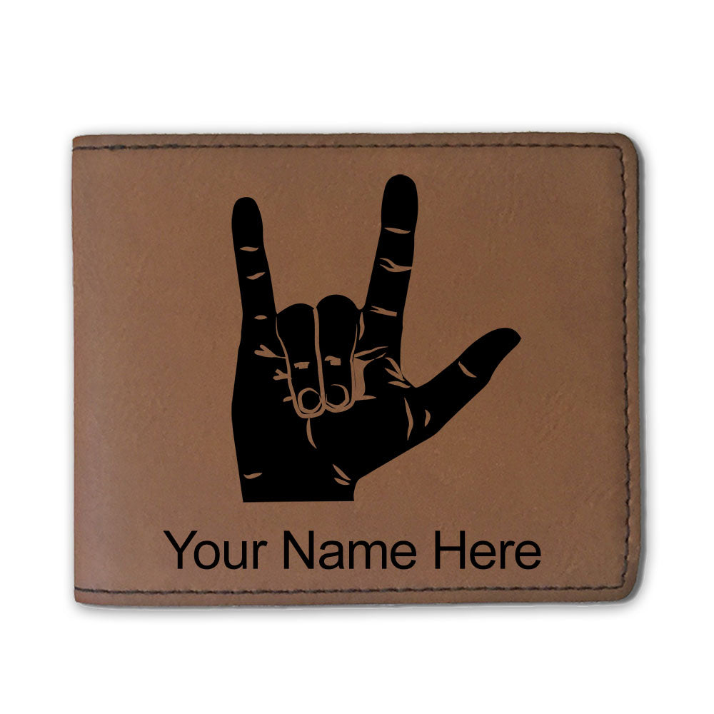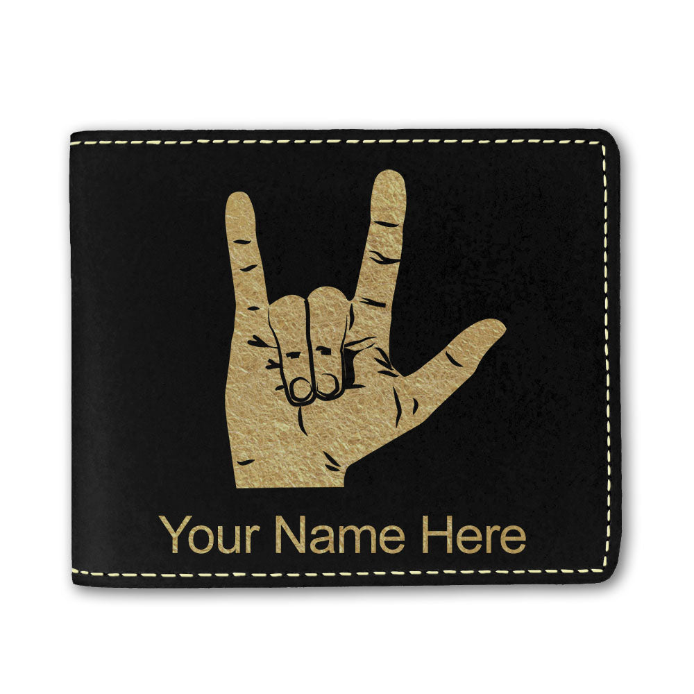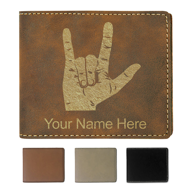 Faux Leather Bi-Fold Wallet, Sign Language I Love You, Personalized Engraving Included