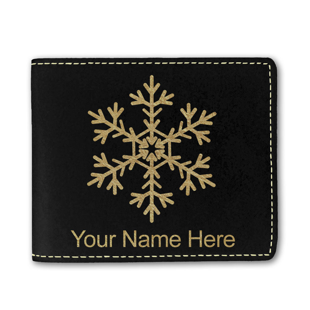Faux Leather Bi-Fold Wallet, Snowflake, Personalized Engraving Included