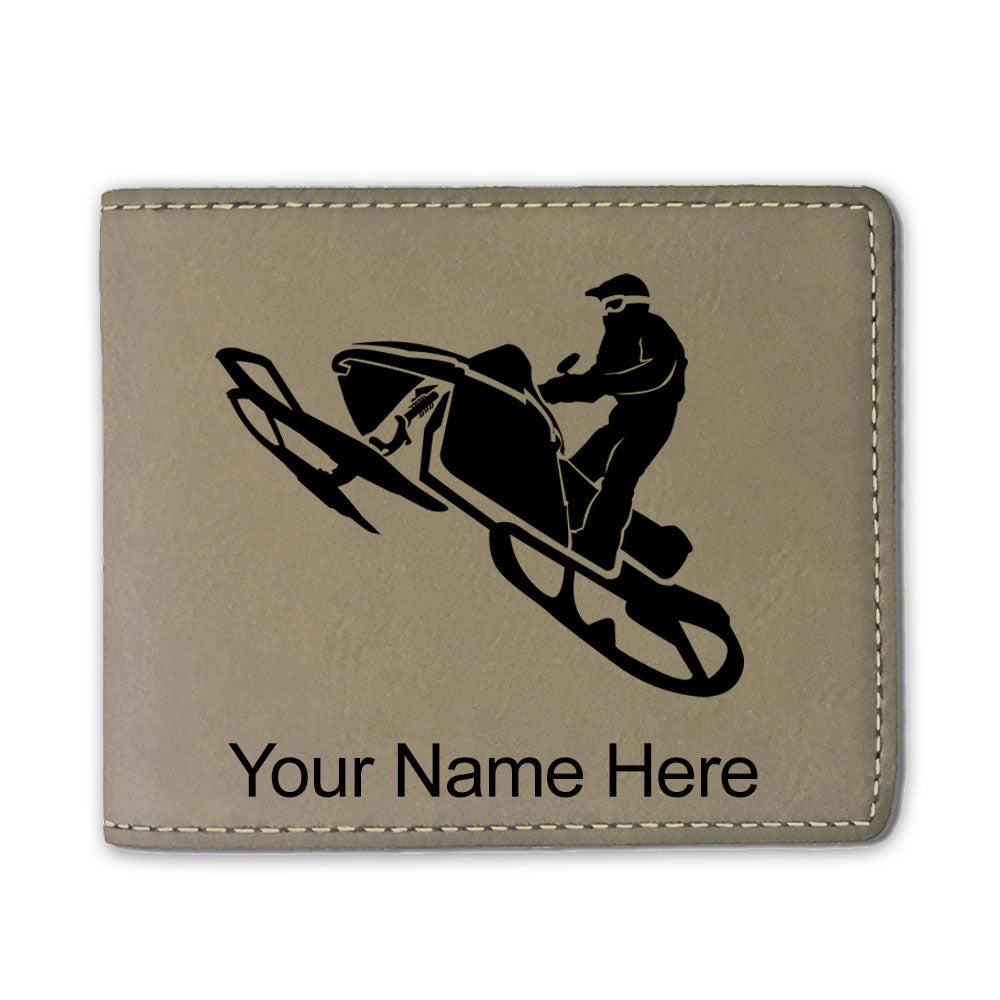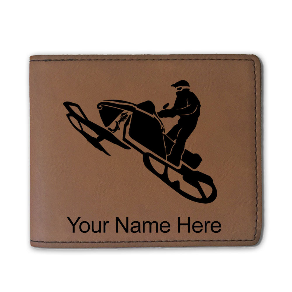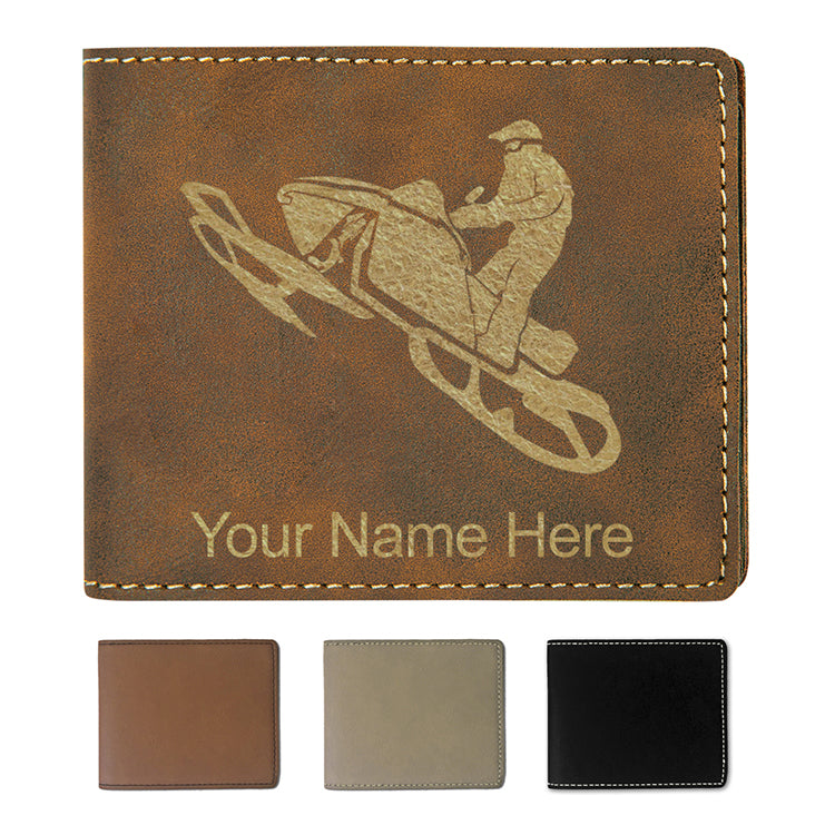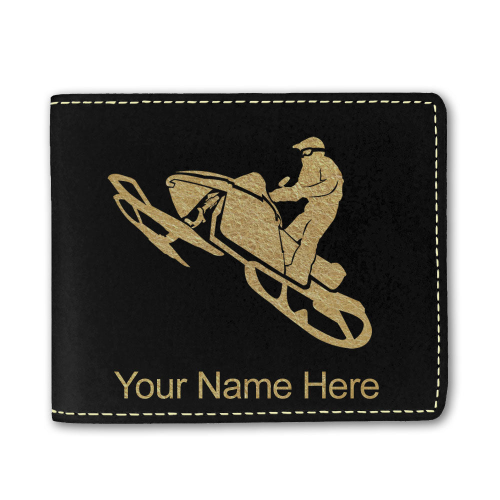 Faux Leather Bi-Fold Wallet, Snowmobile, Personalized Engraving Included