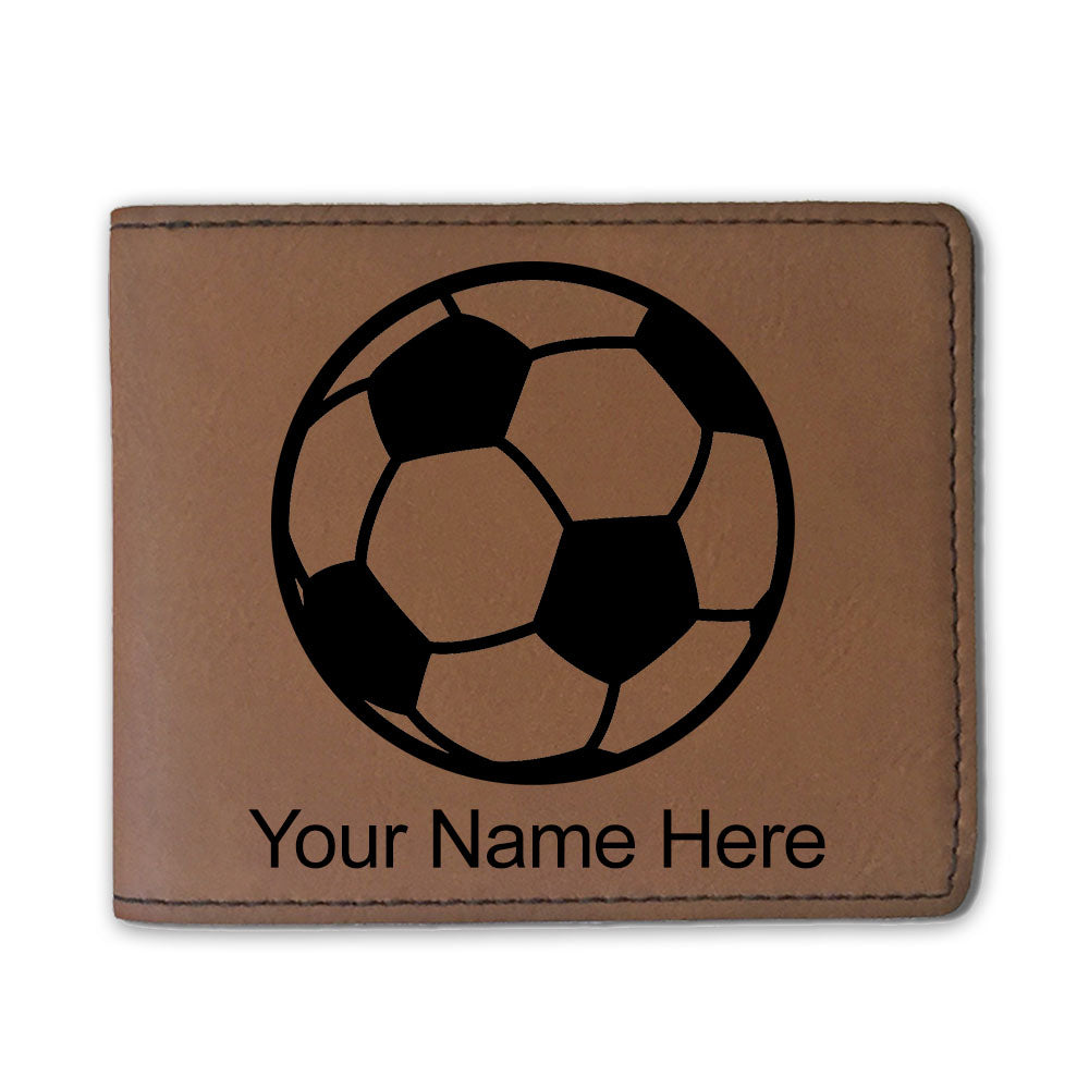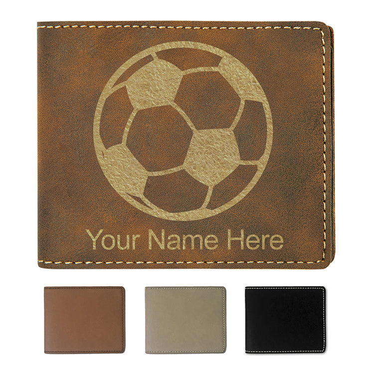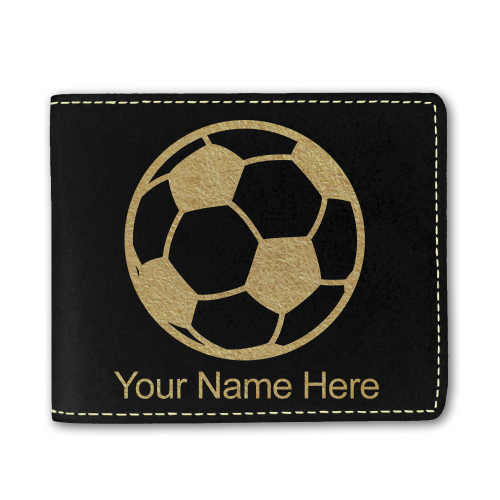 Faux Leather Bi-Fold Wallet, Soccer Ball, Personalized Engraving Included