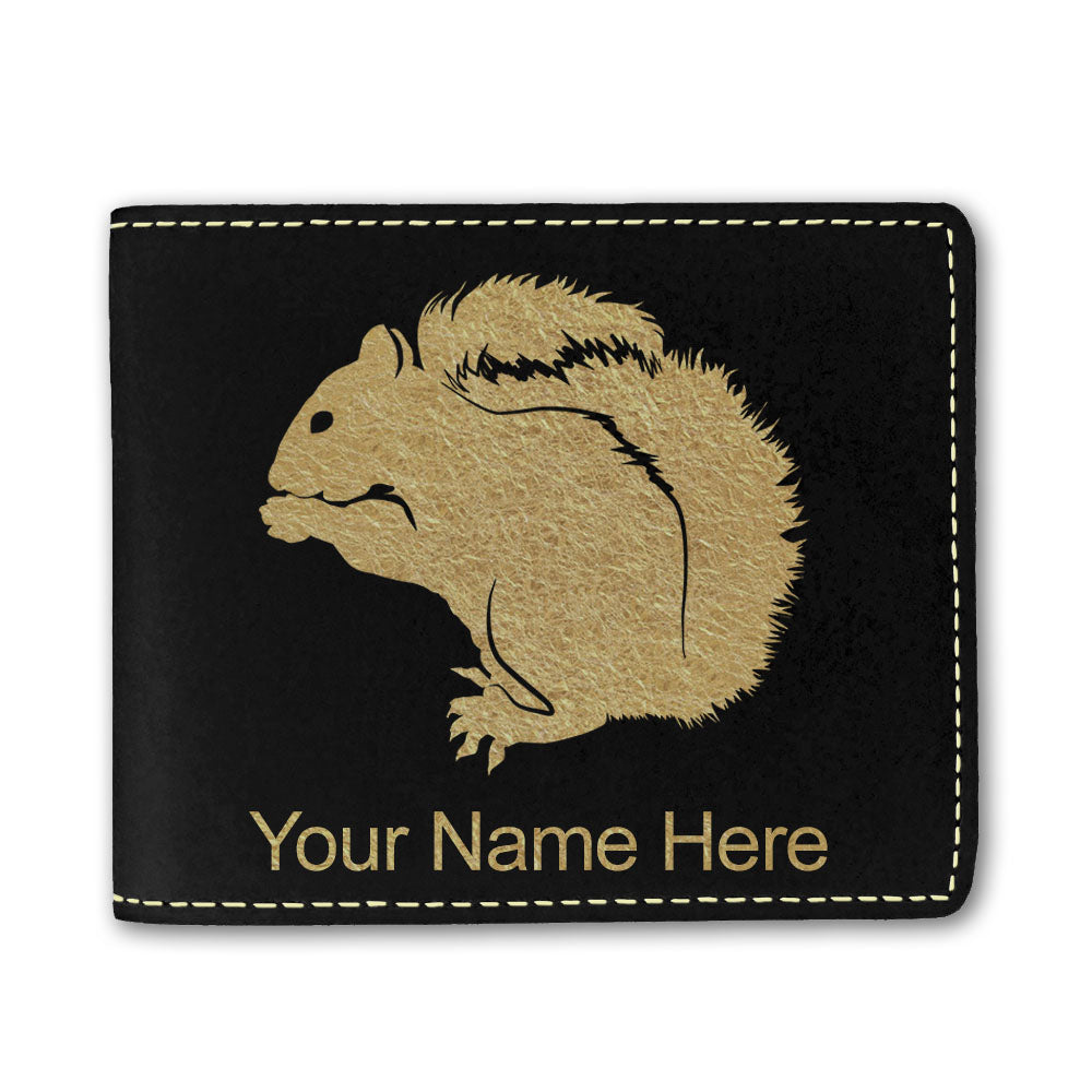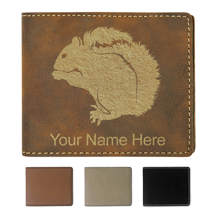 Faux Leather Bi-Fold Wallet, Squirrel, Personalized Engraving Included